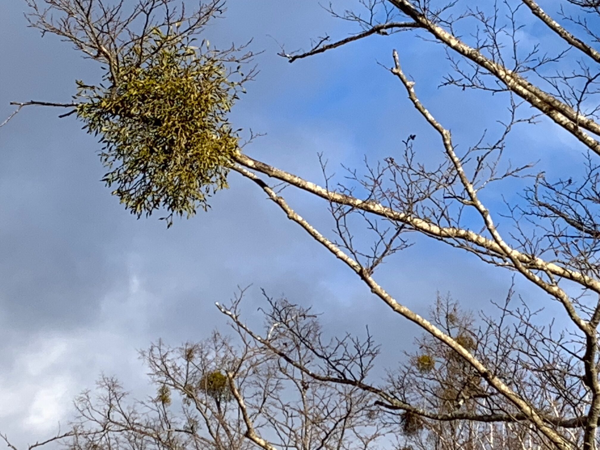 葉が落葉したので、木の枝についているヤドリギが目立ちます。