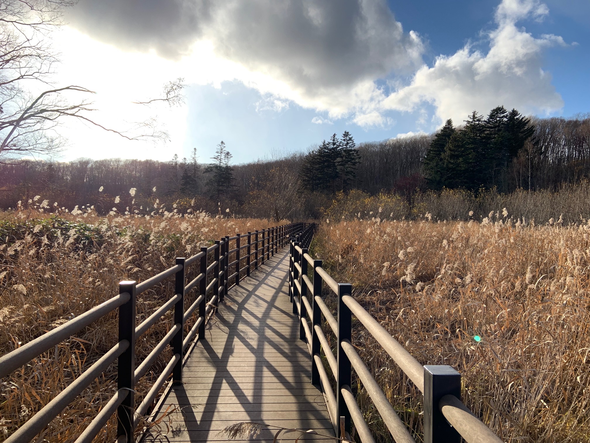 木道ではヨシの穂がフワフワしています。