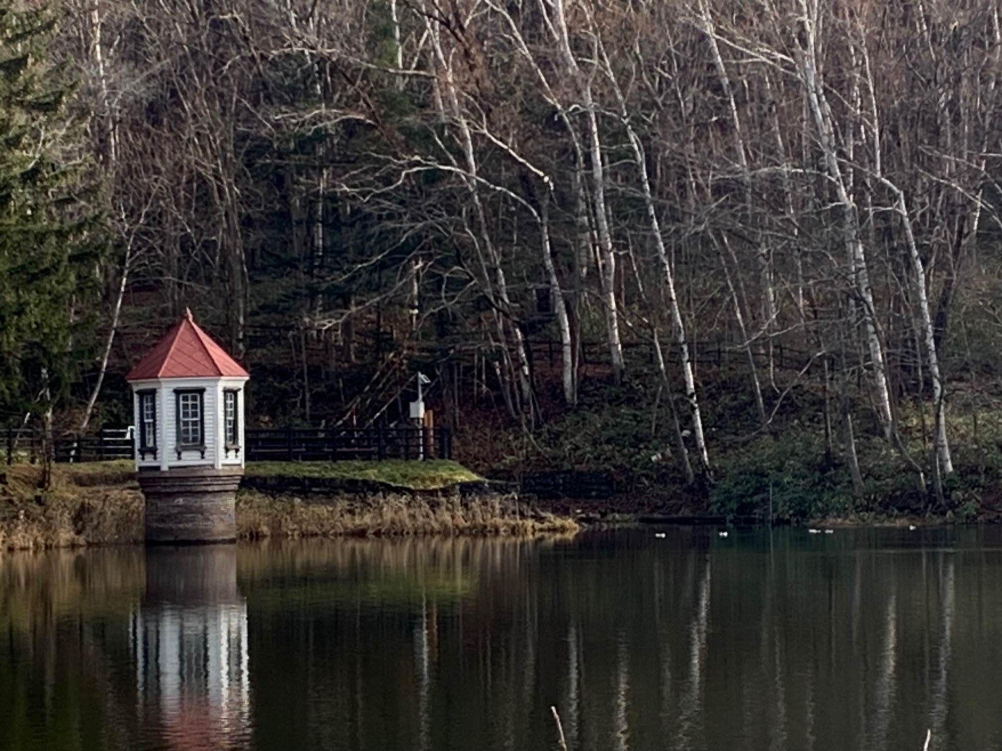 一時、凍りかけた池はふたたび融けて水面があらわれました。