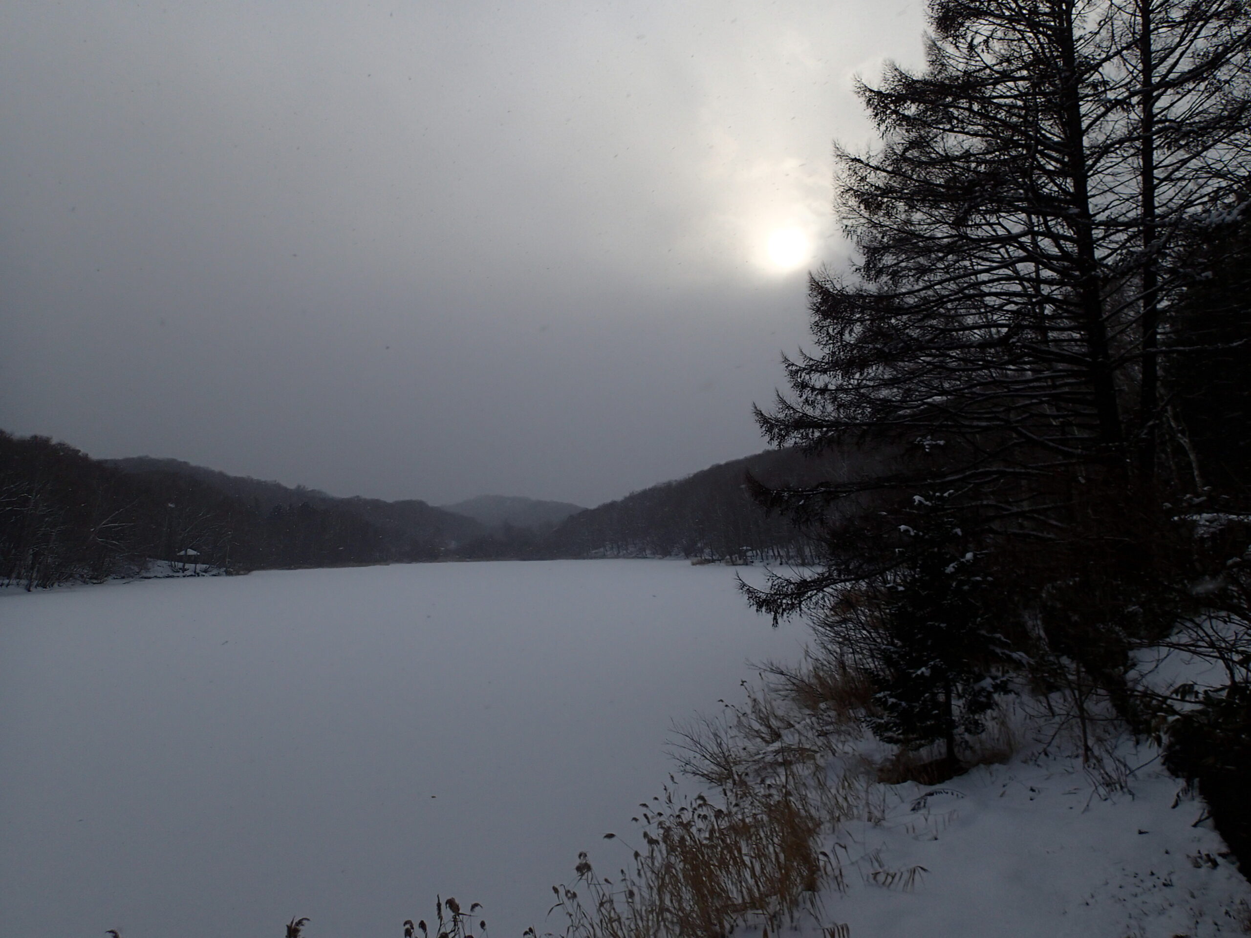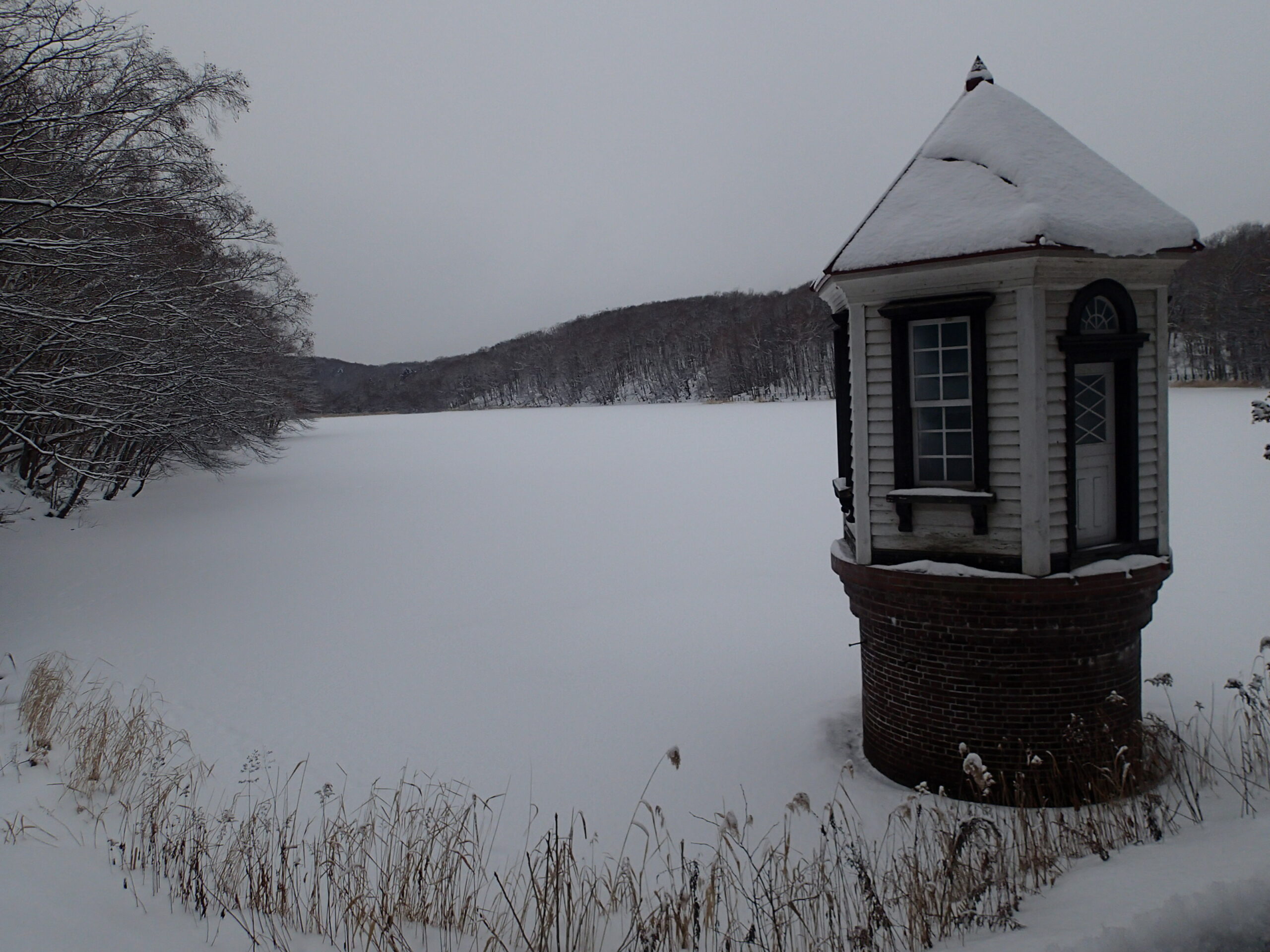 園路も雪に覆われているので散策には長靴などの装備が必要です。