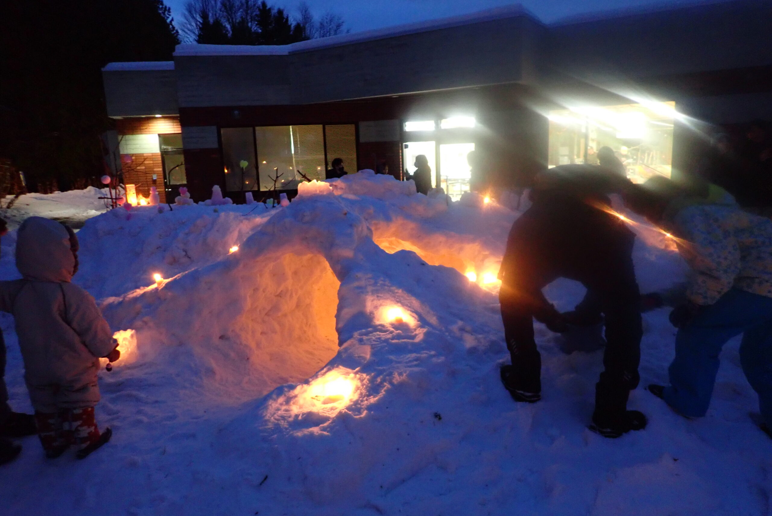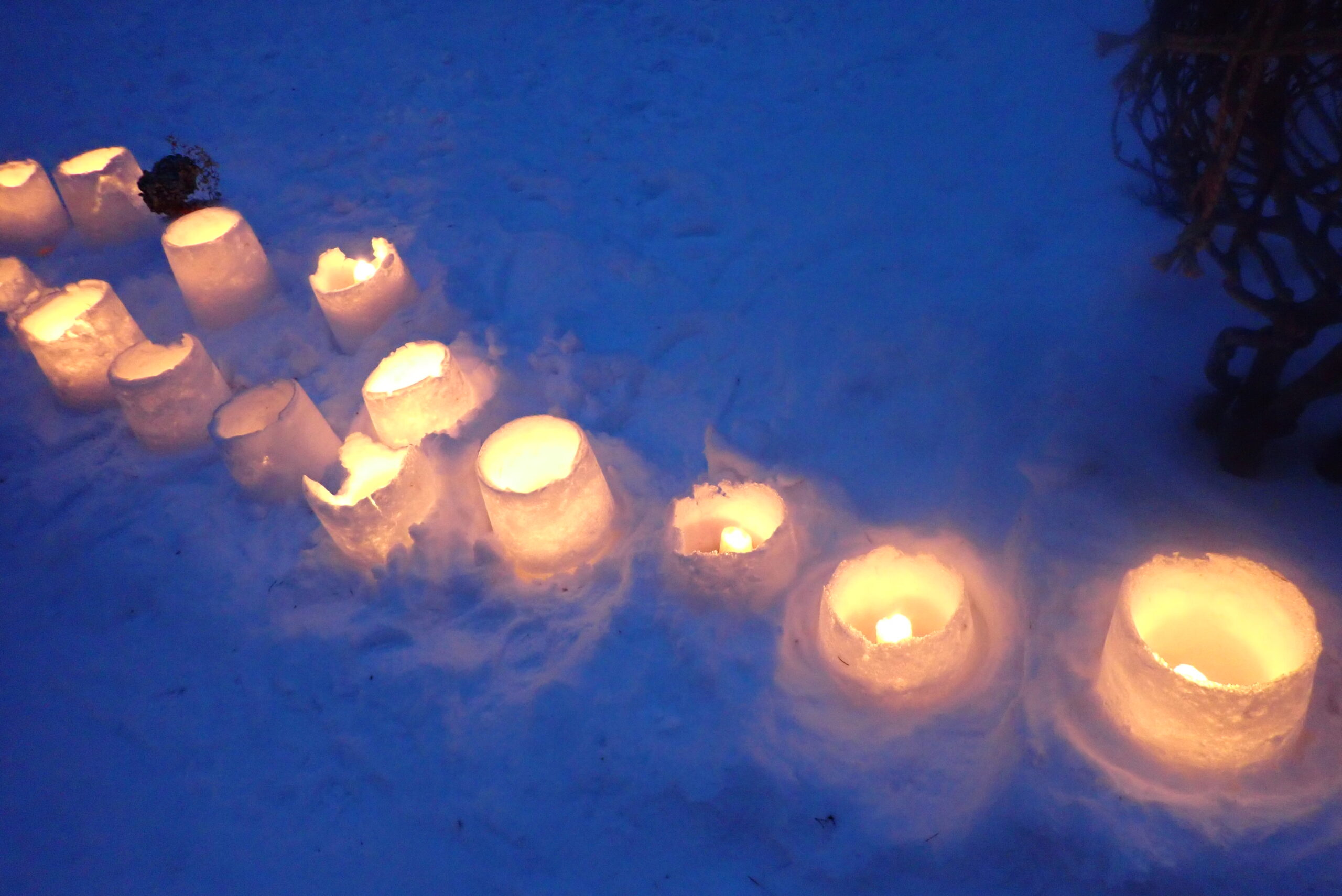 お昼過ぎから、みんなで作ったスノーキャンドルにあかりを灯しました。