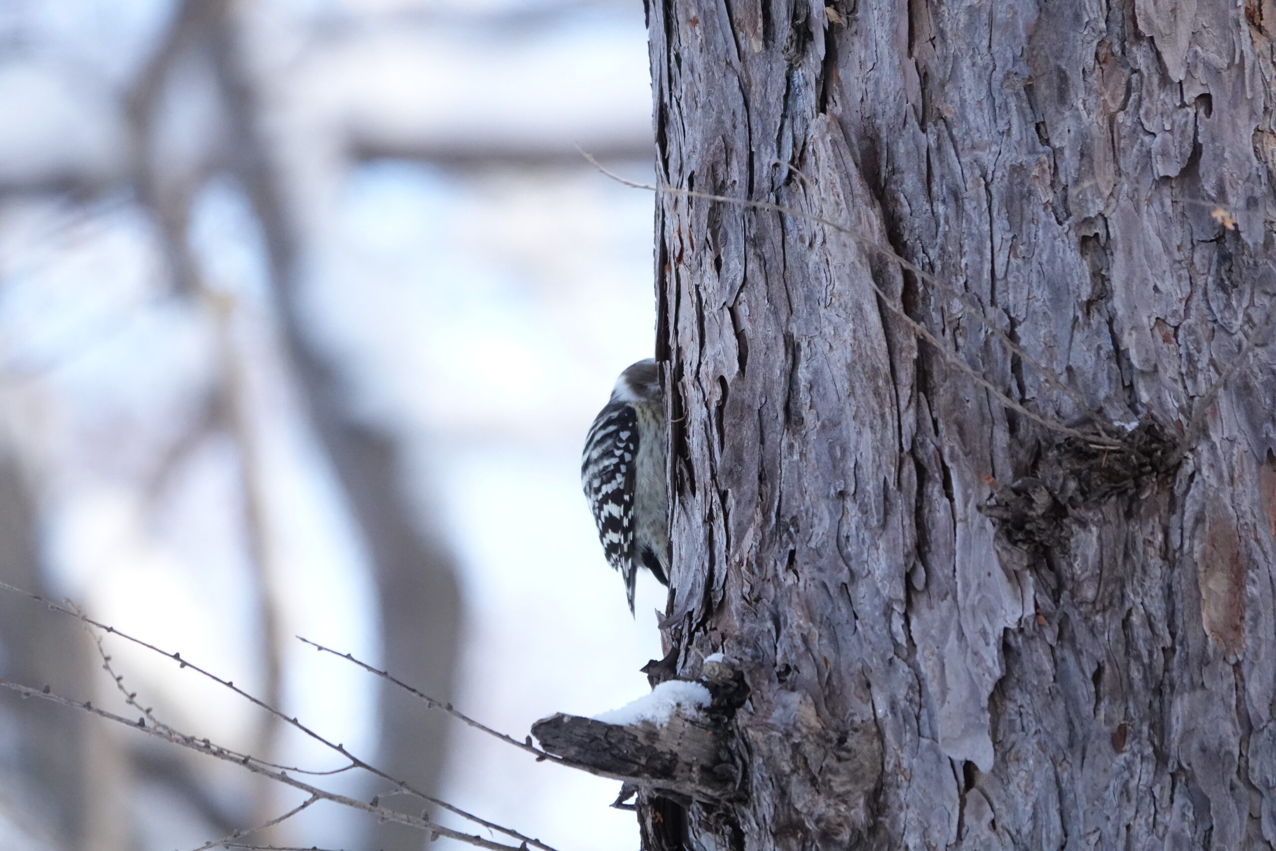 樹皮に融け込むカラーで目立ちませんが、「ギーッ」という鳴き声が特徴です。