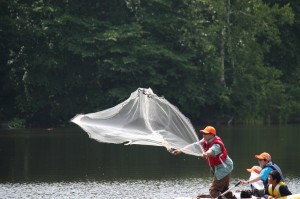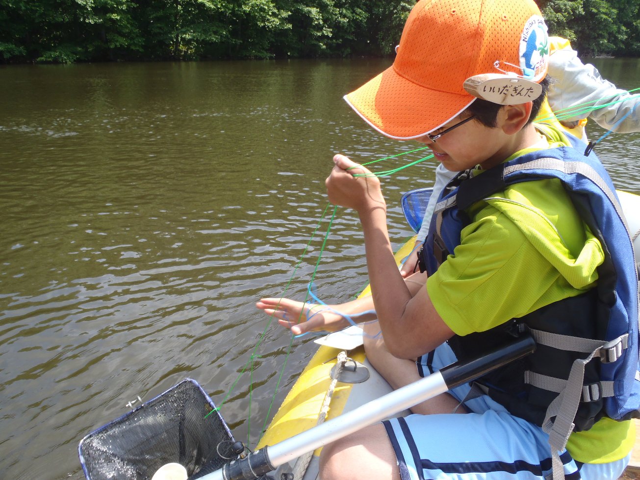 さけ科学館の協力を得て、ボートから投網も打ってみました。
