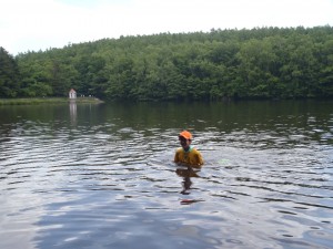 160cmくらいある6年生の隊員は果敢にも突入!楽しそうに、胸まで水に浸かっていました。