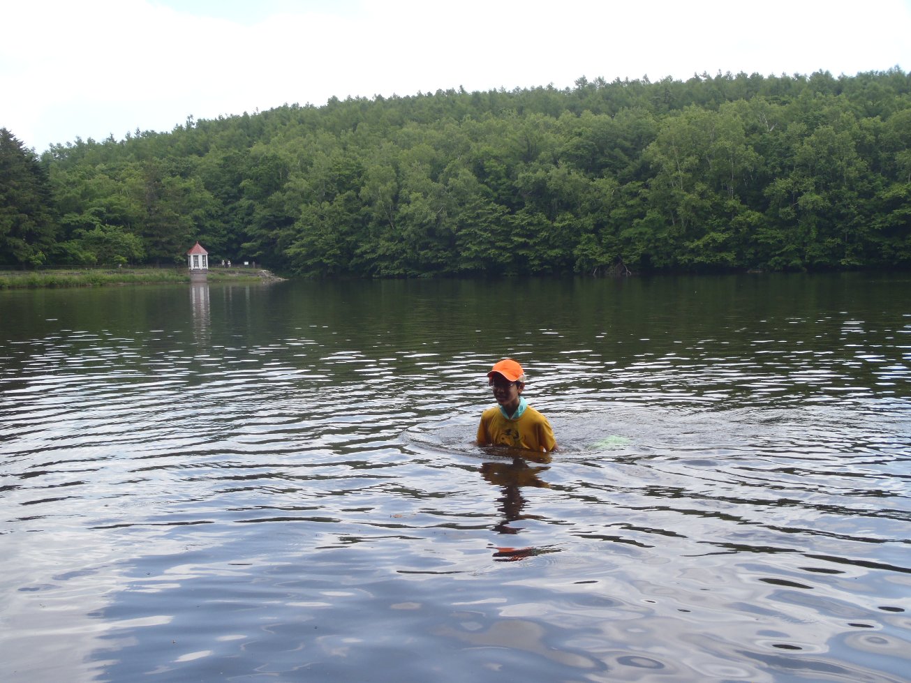 今回、札幌国際大学の酒井さん、肖さん、さけ科学館の協力で、念願の水源池