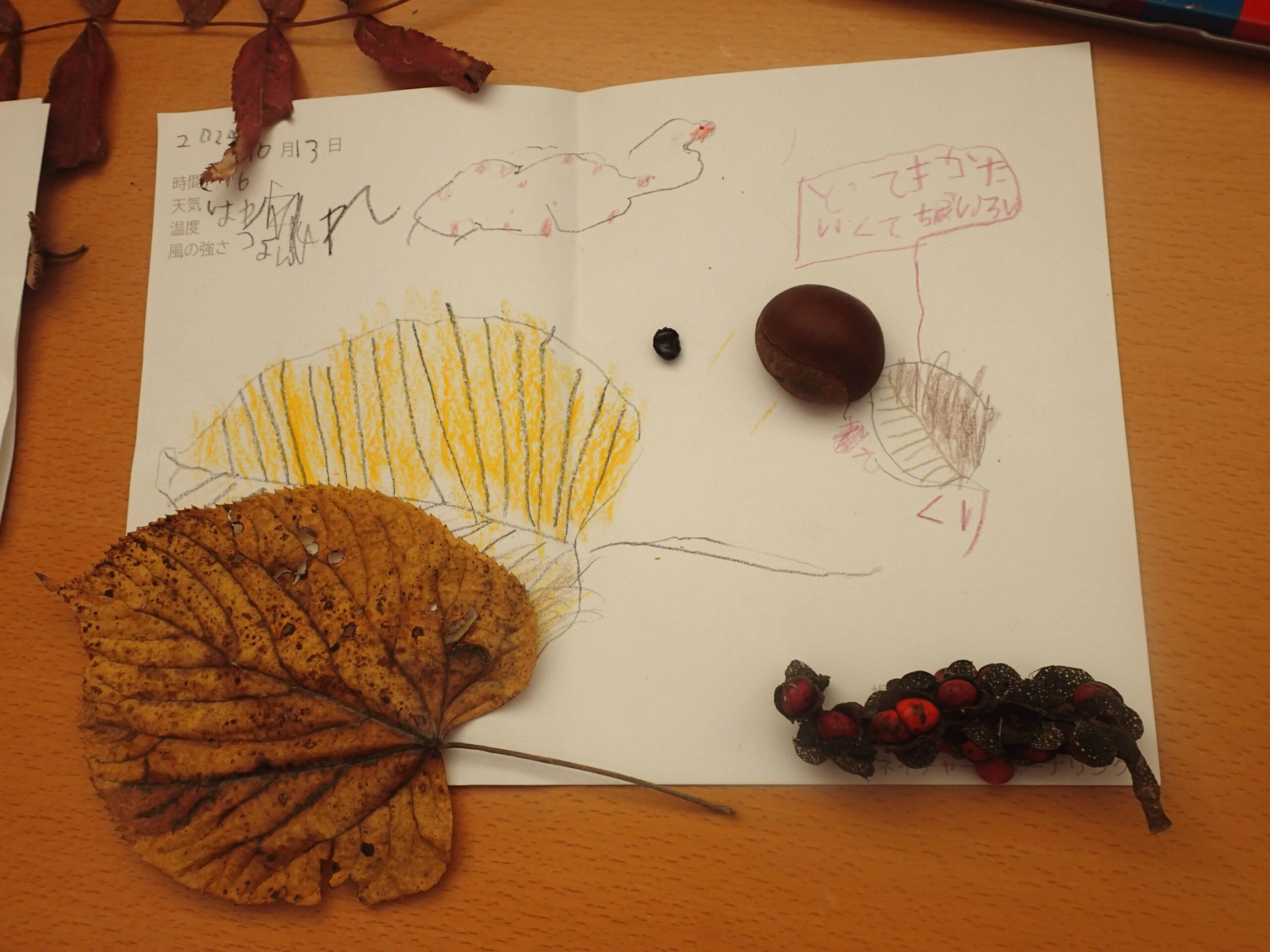 管理事務所内の展示物を記録しても楽しいですし、野外のものを拾ってきたり、バインダーを持って外に出て描くのも楽しいですよ。