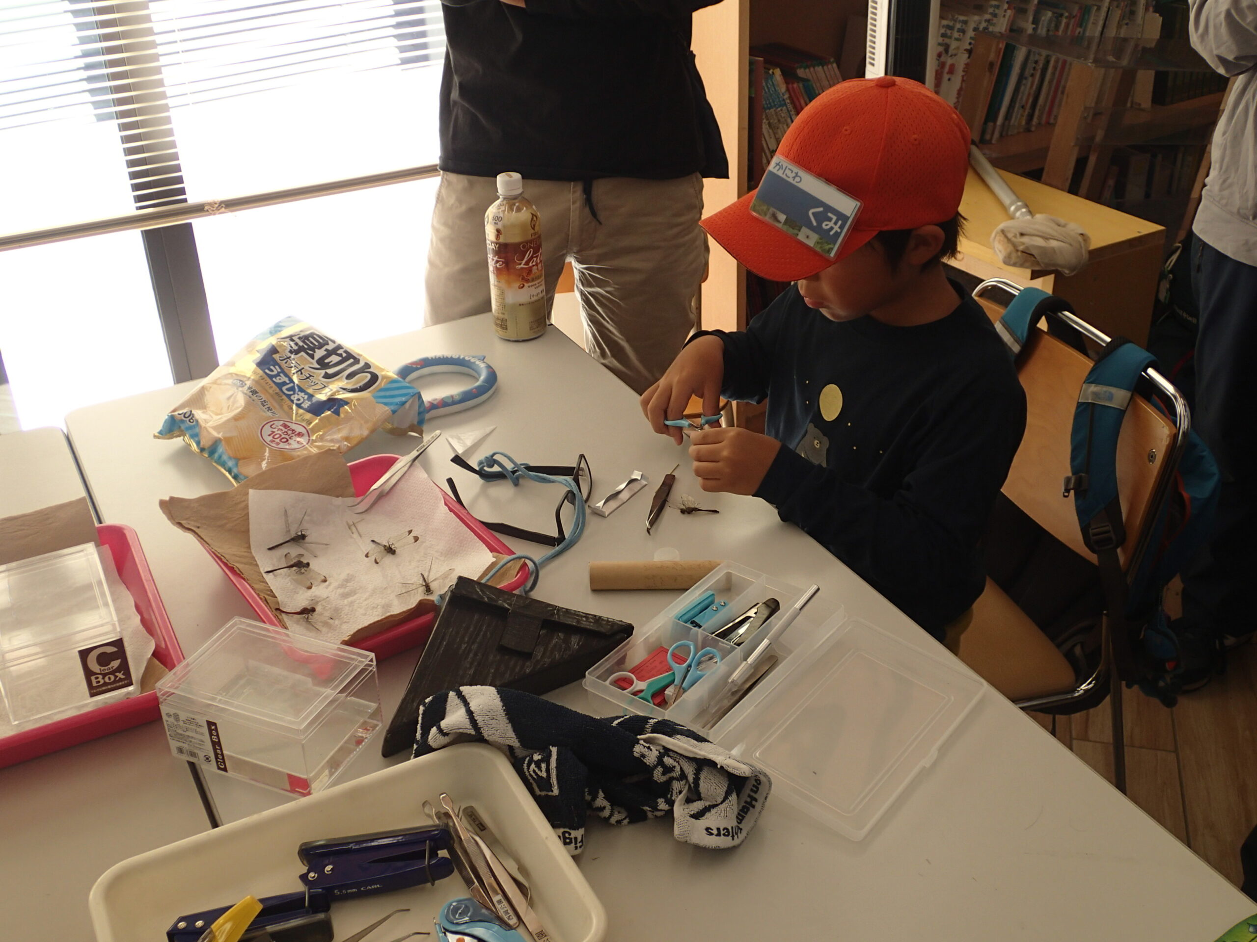 お弁当の後にはトンボの標本を作ります。