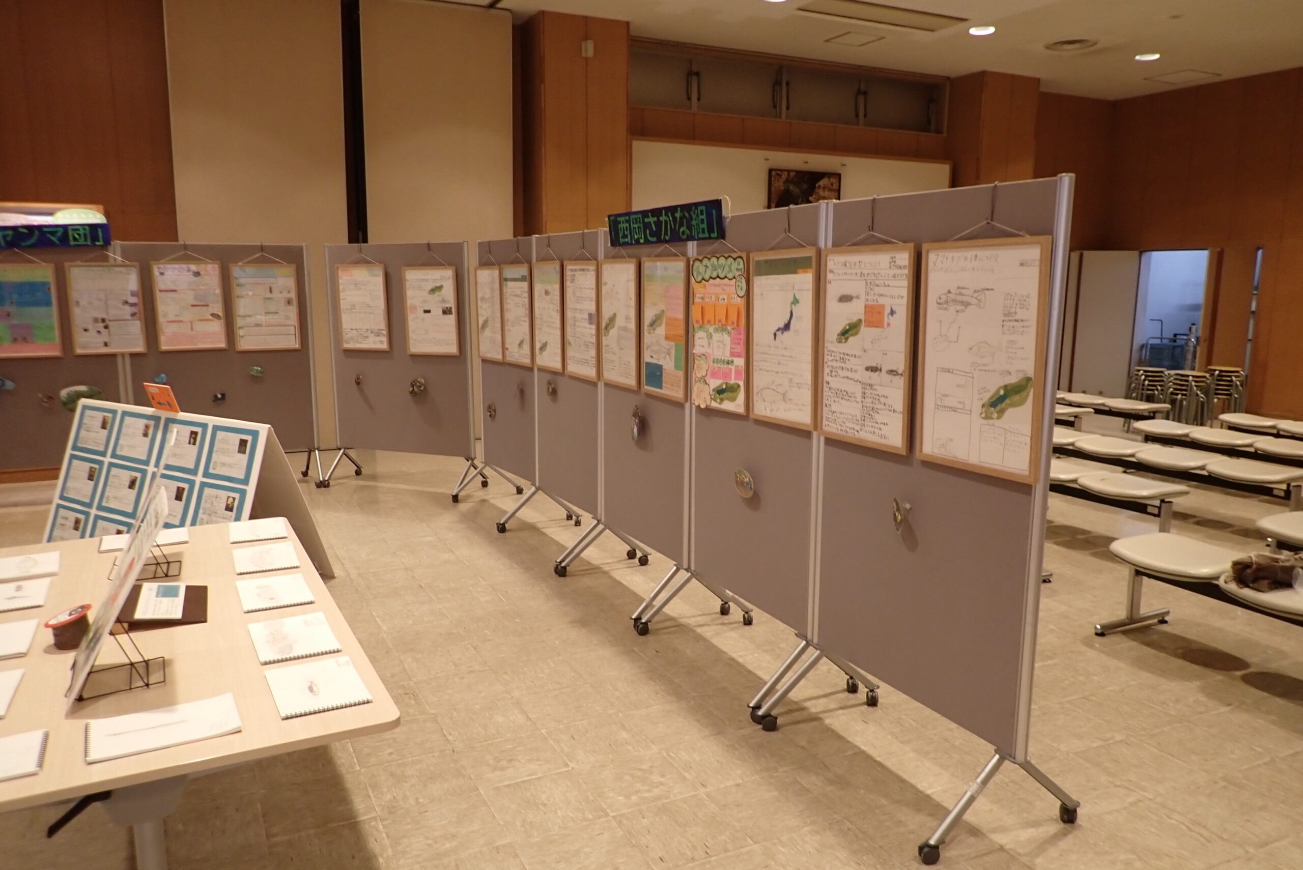 報告展では、子どもたちが調査の成果を一人ずつ1枚のポスターにまとめて展示しています。