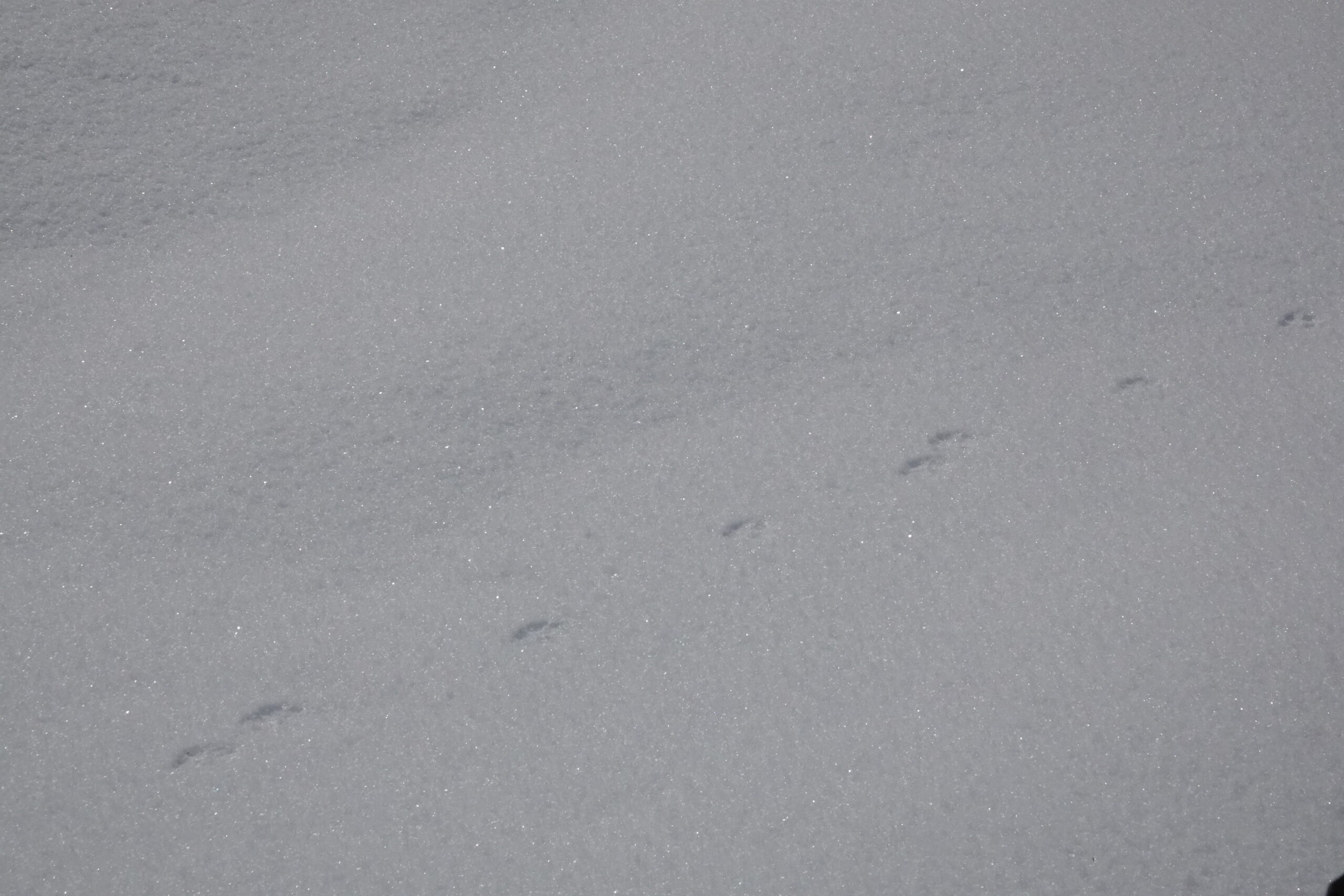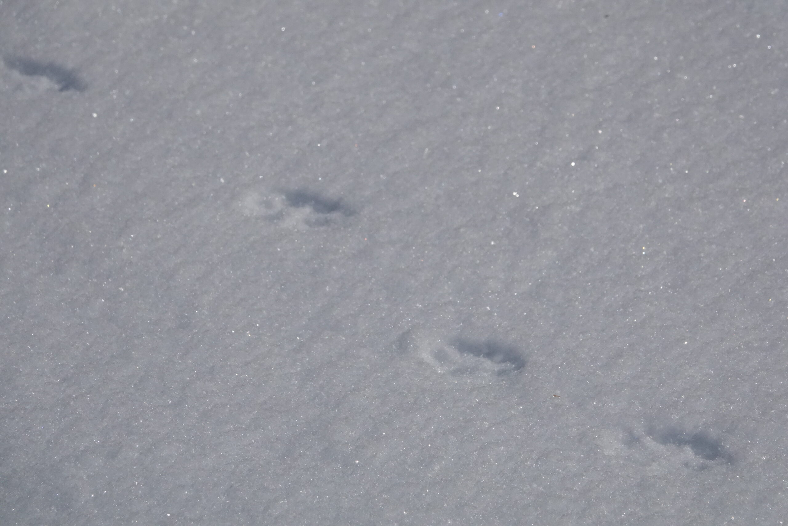 雪の上には動物たちの足跡が点々とついています。