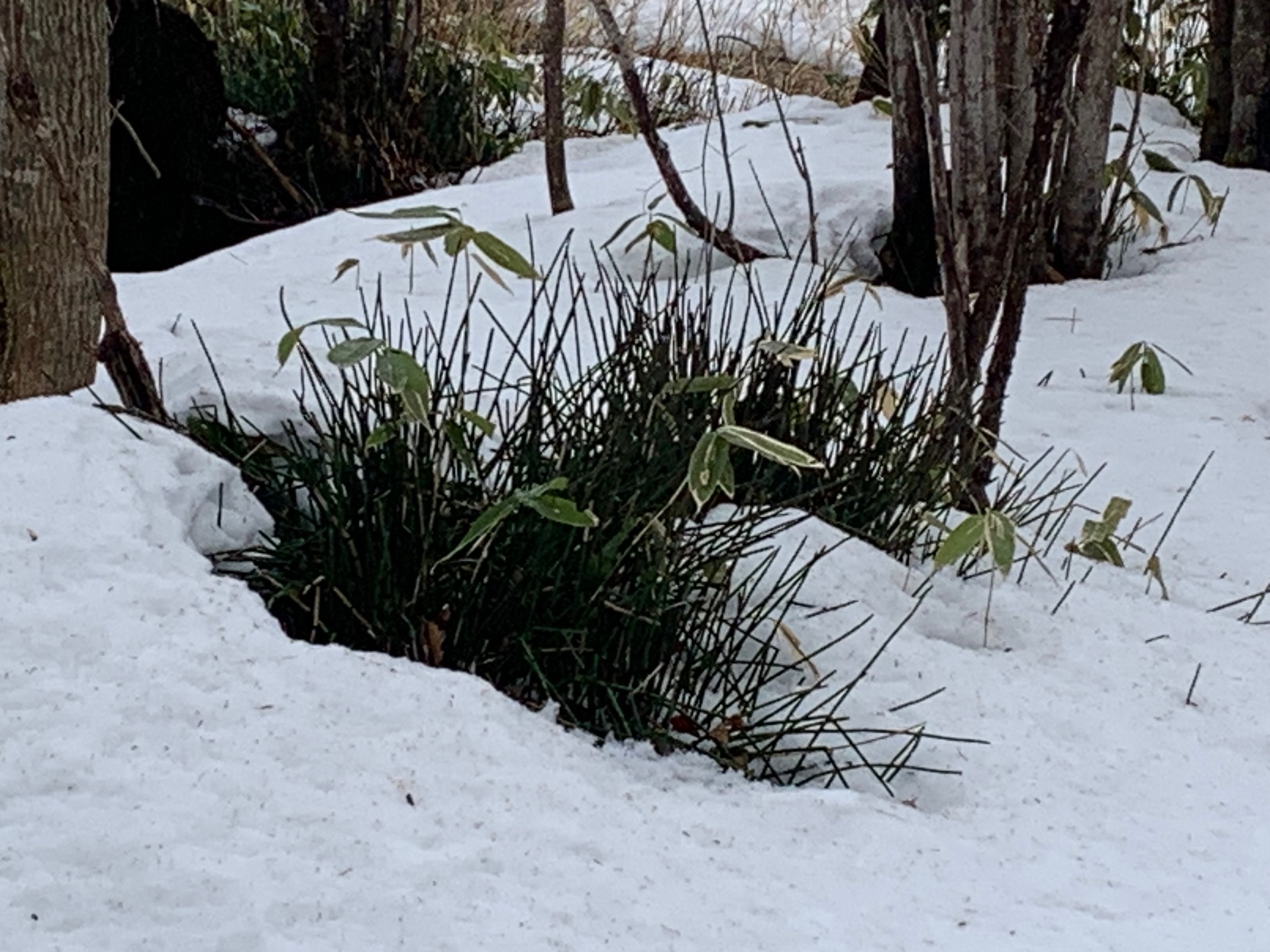 ハリネズミのように雪から突き出ているのはトクサです。