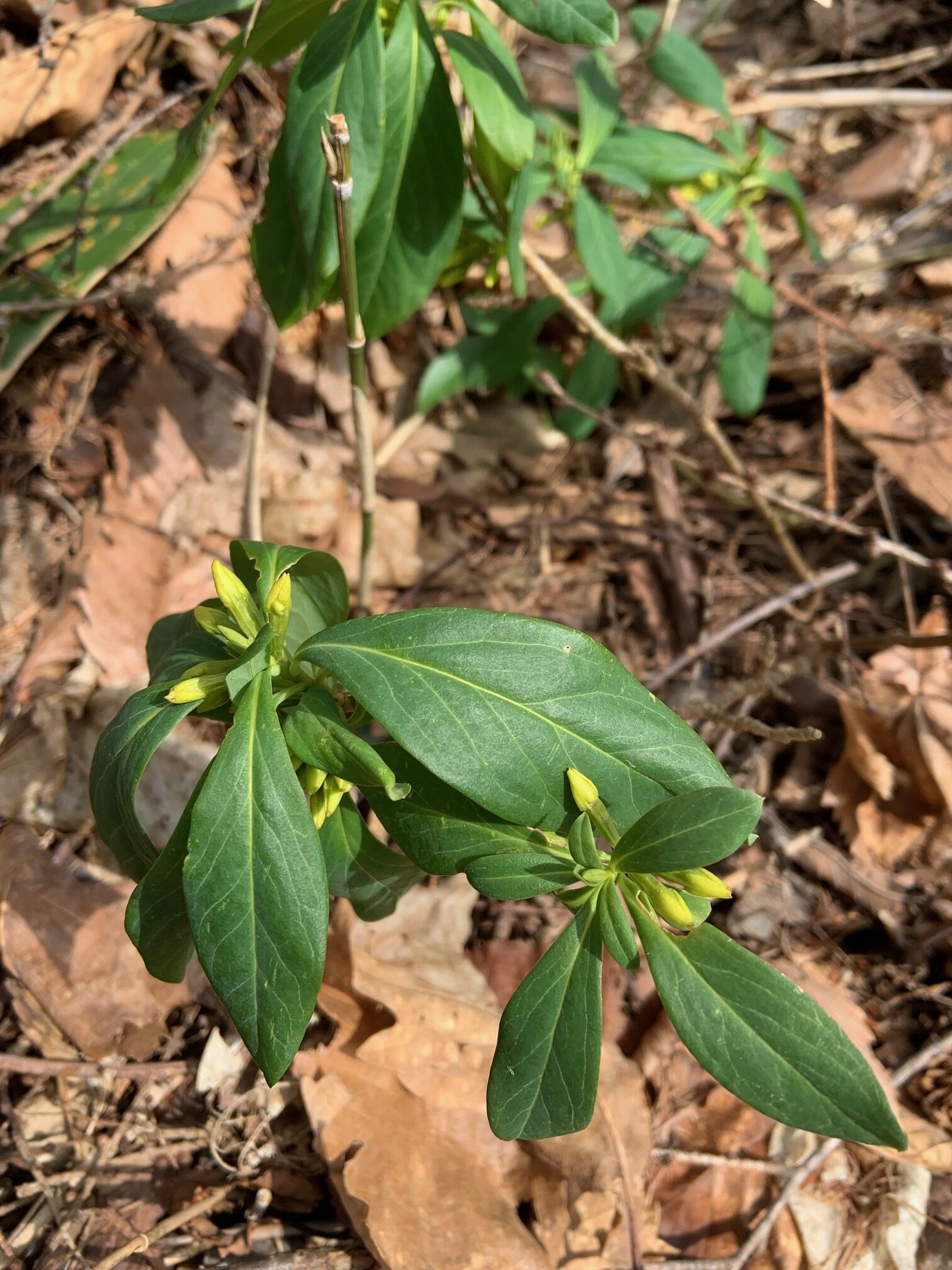 フデリンドウの冬を越した小さな芽や、ジンヨウイチヤクソウの葉の緑も目に嬉しいです。