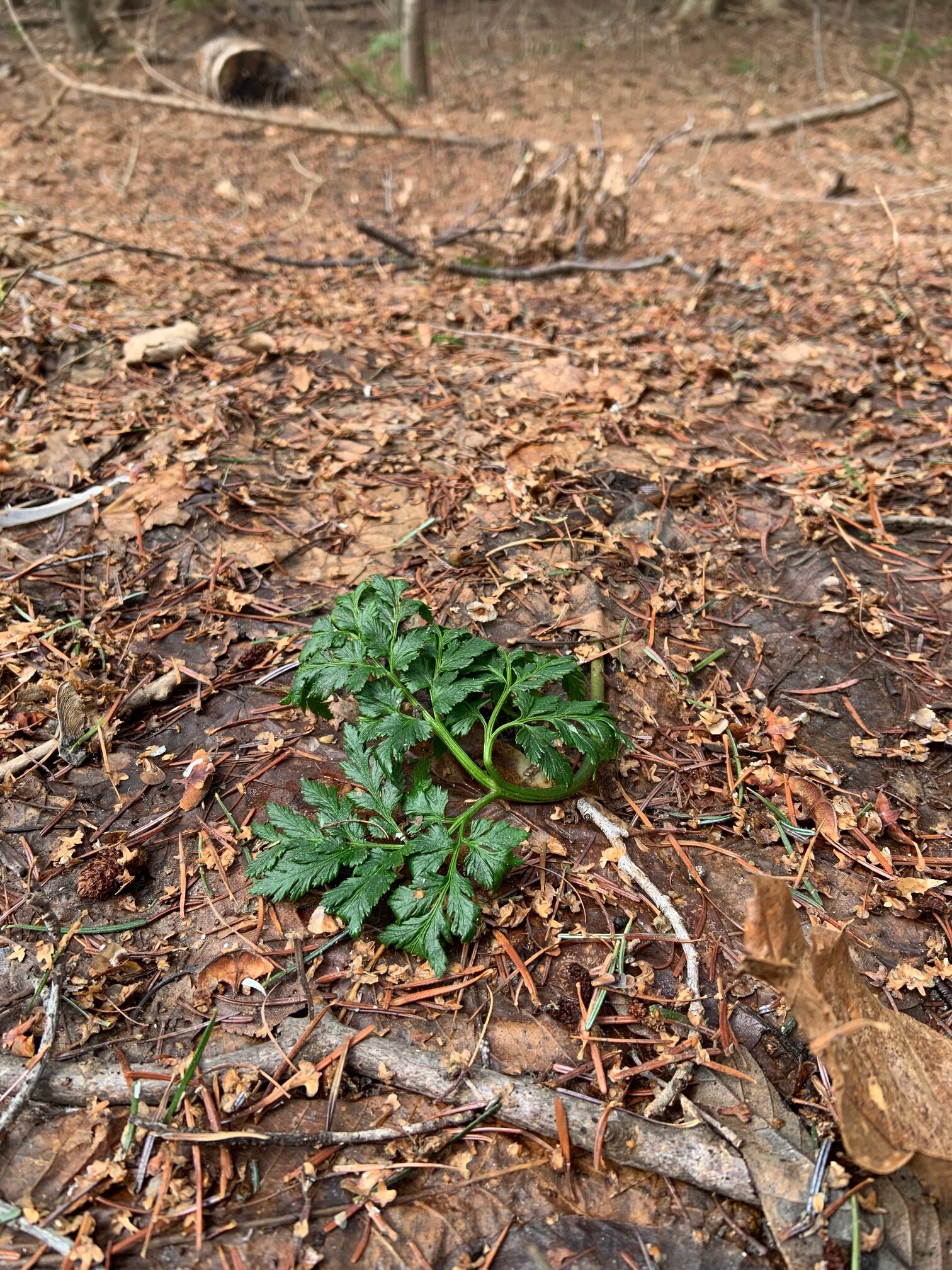エゾフユノハナワラビの緑色の葉も顔を出していました。