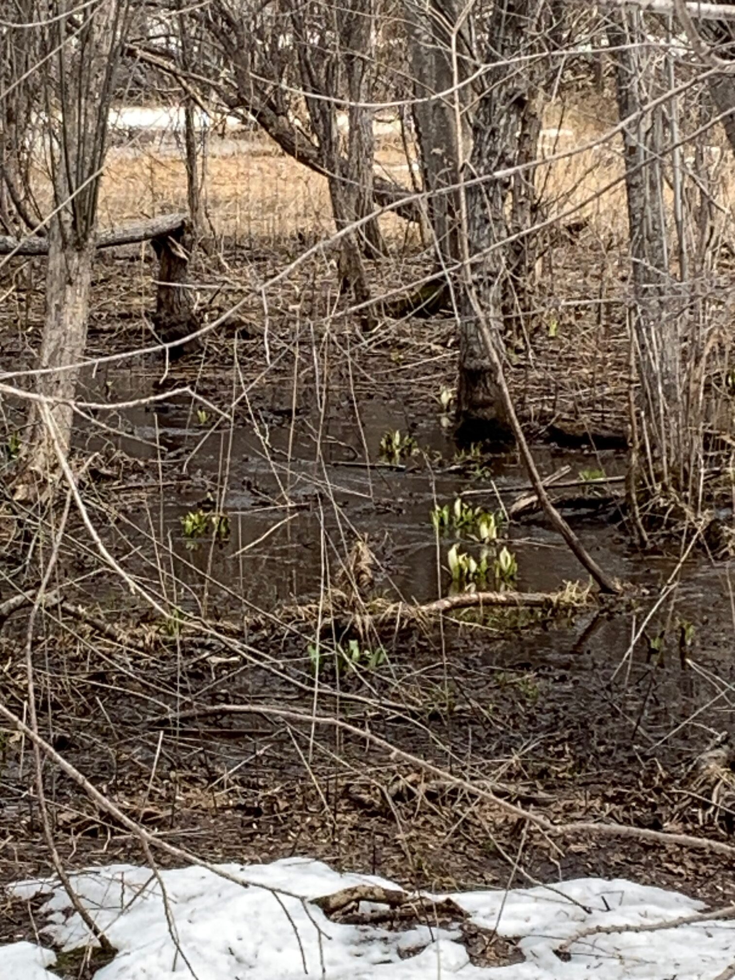 湿原ではミズバショウの白い仏炎苞が水面から顔を出していましたよ。