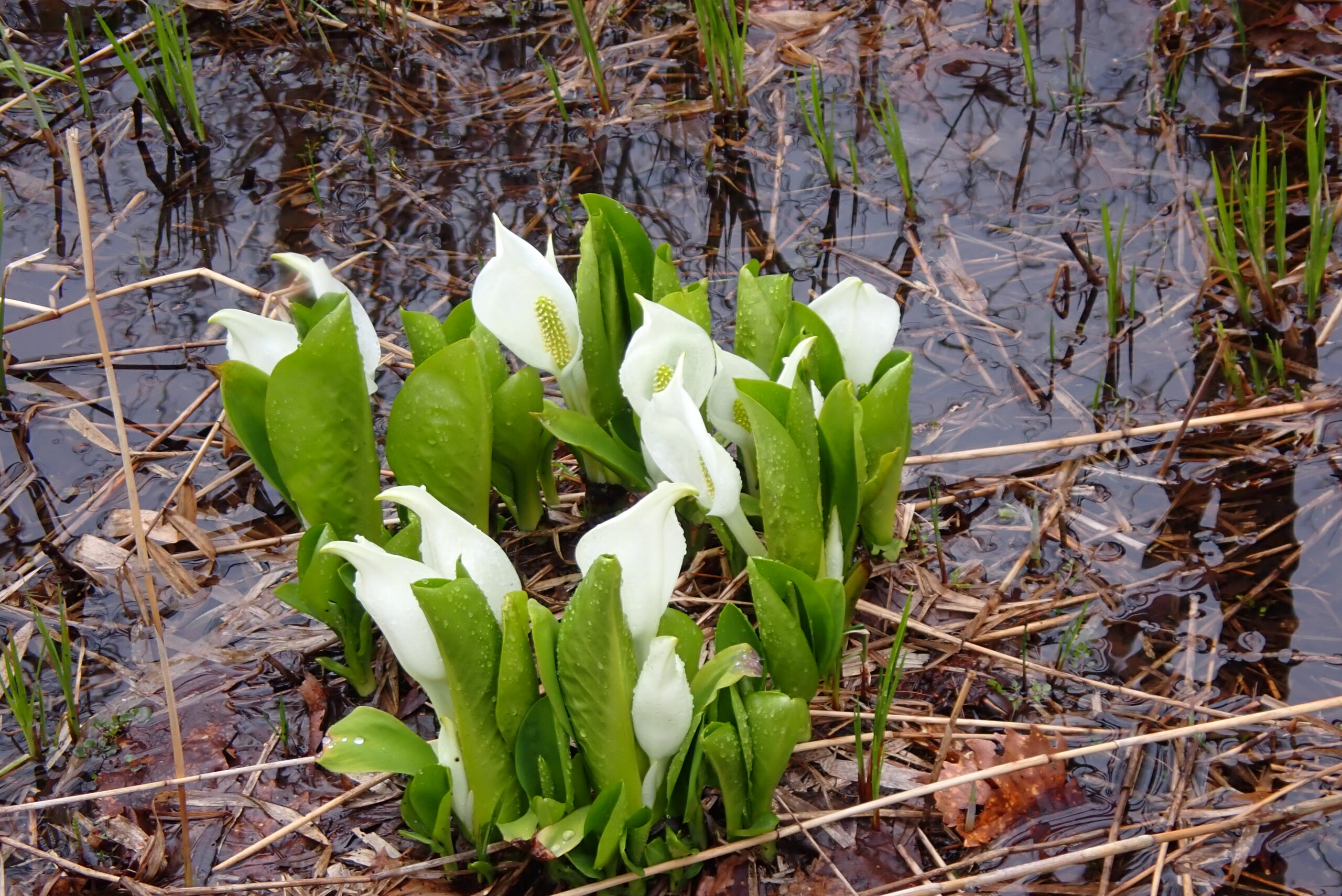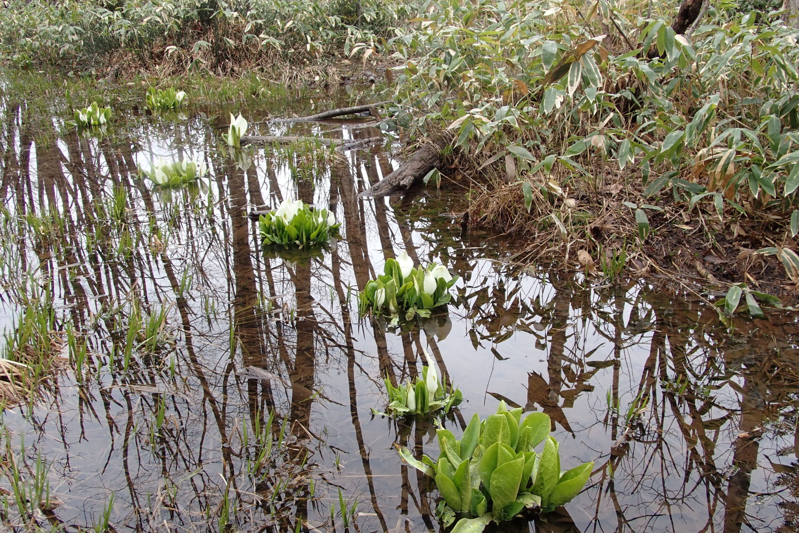 小さな湿地にはエゾノリュウキンカがちょうど満開でした。
