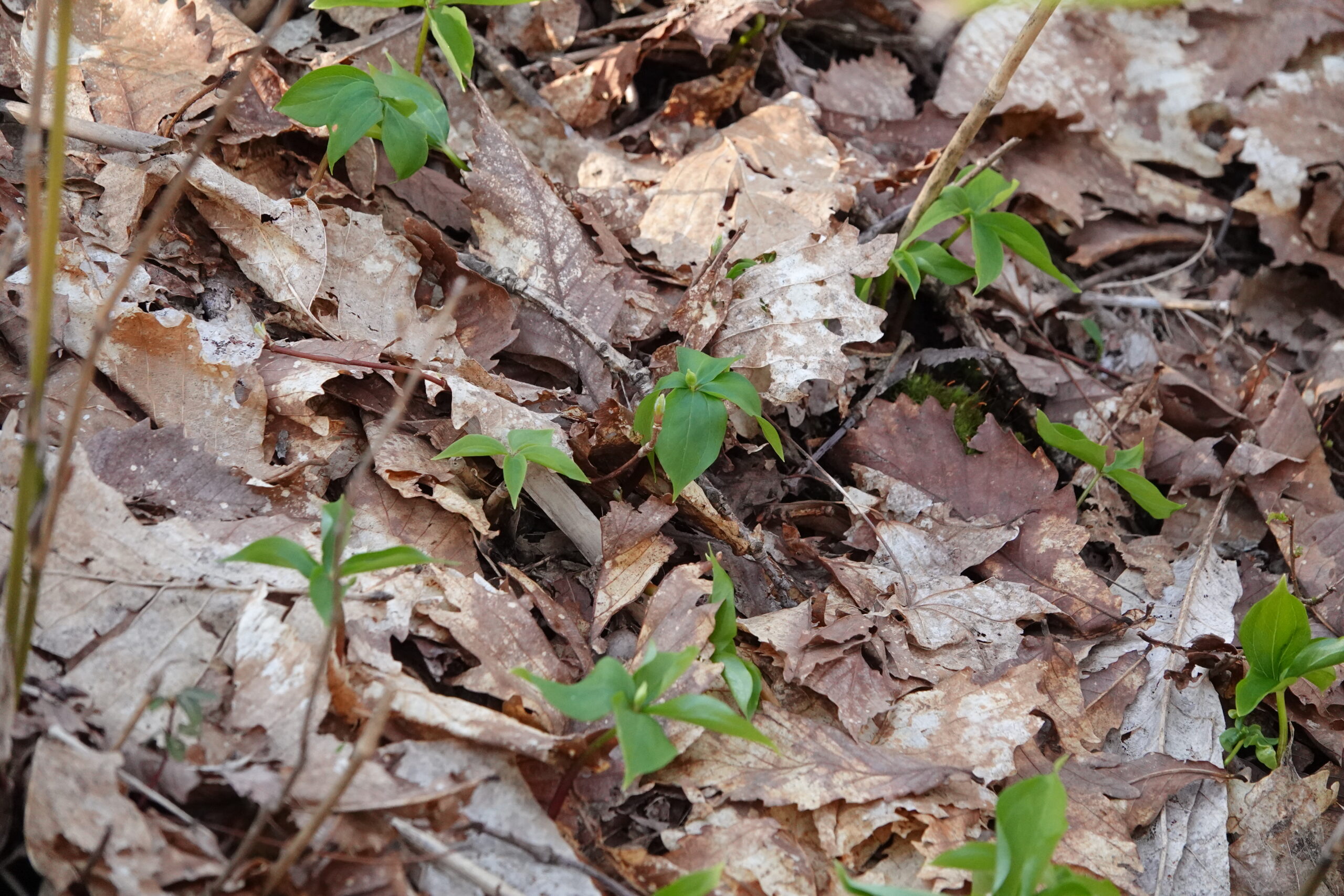 エゾエンゴサクやナニワズ、フッキソウ、エンレイソウの花が咲いています。