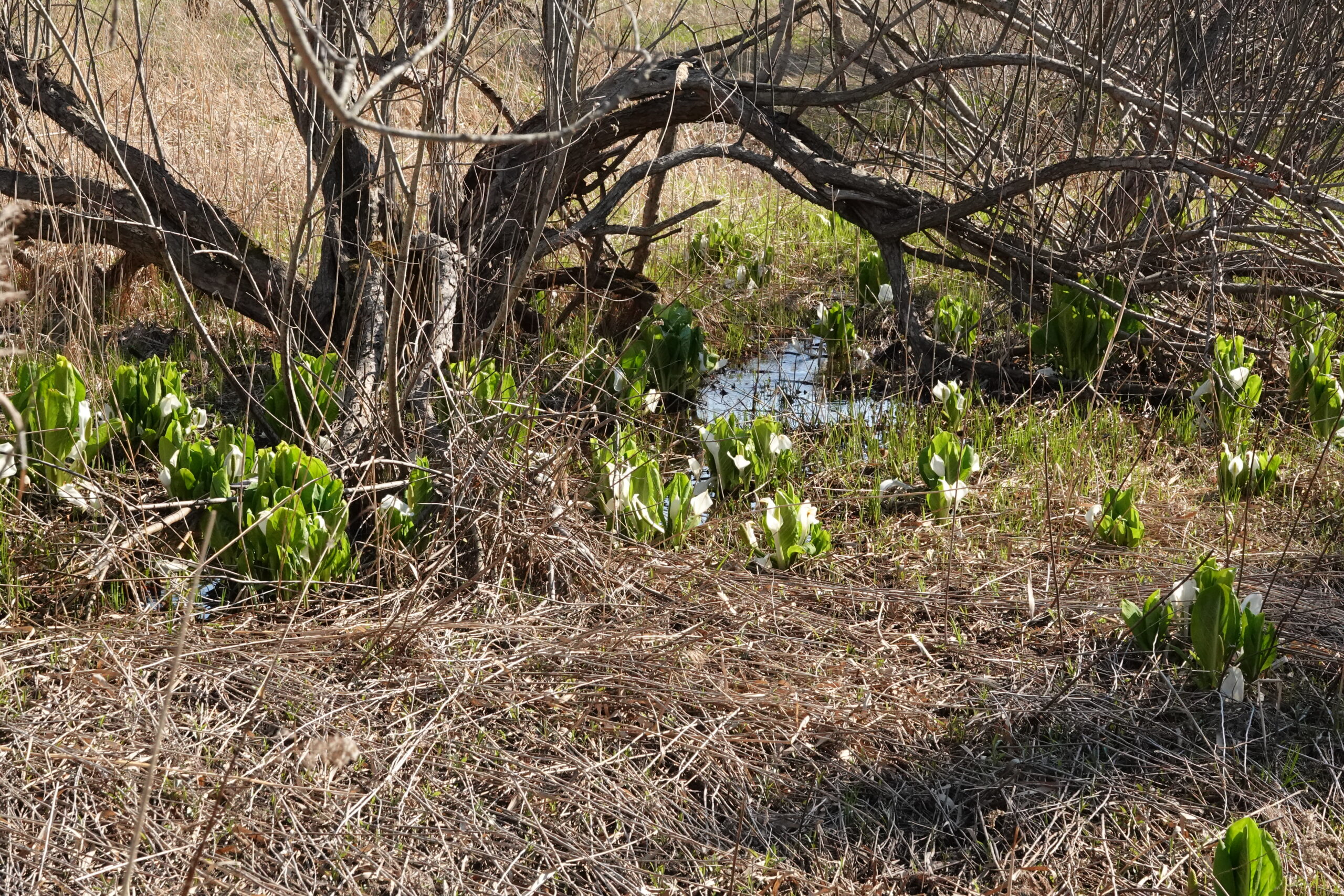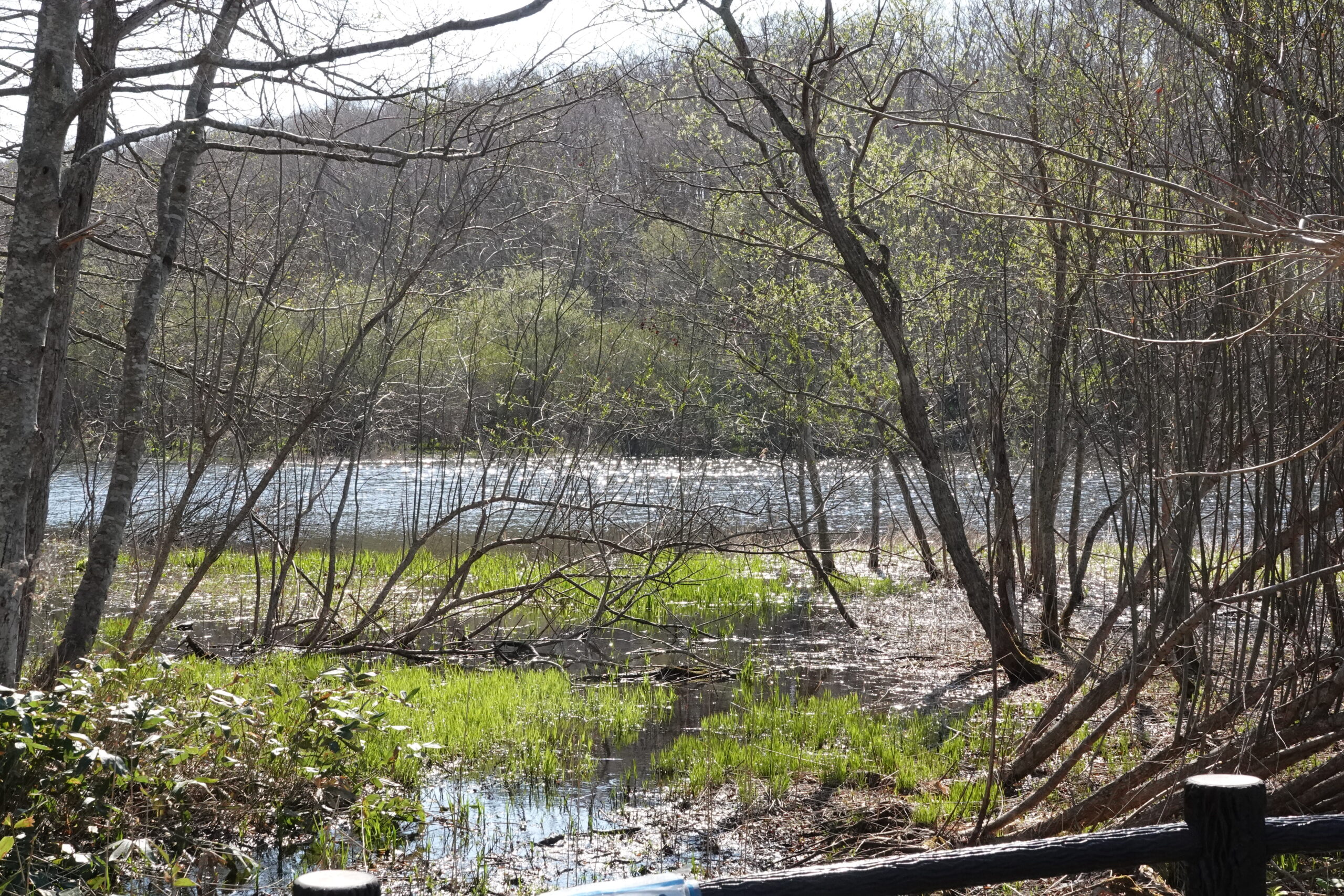 ヨシやヤナギも芽吹き、湿原はみずみずしい緑色がまぶしいです。