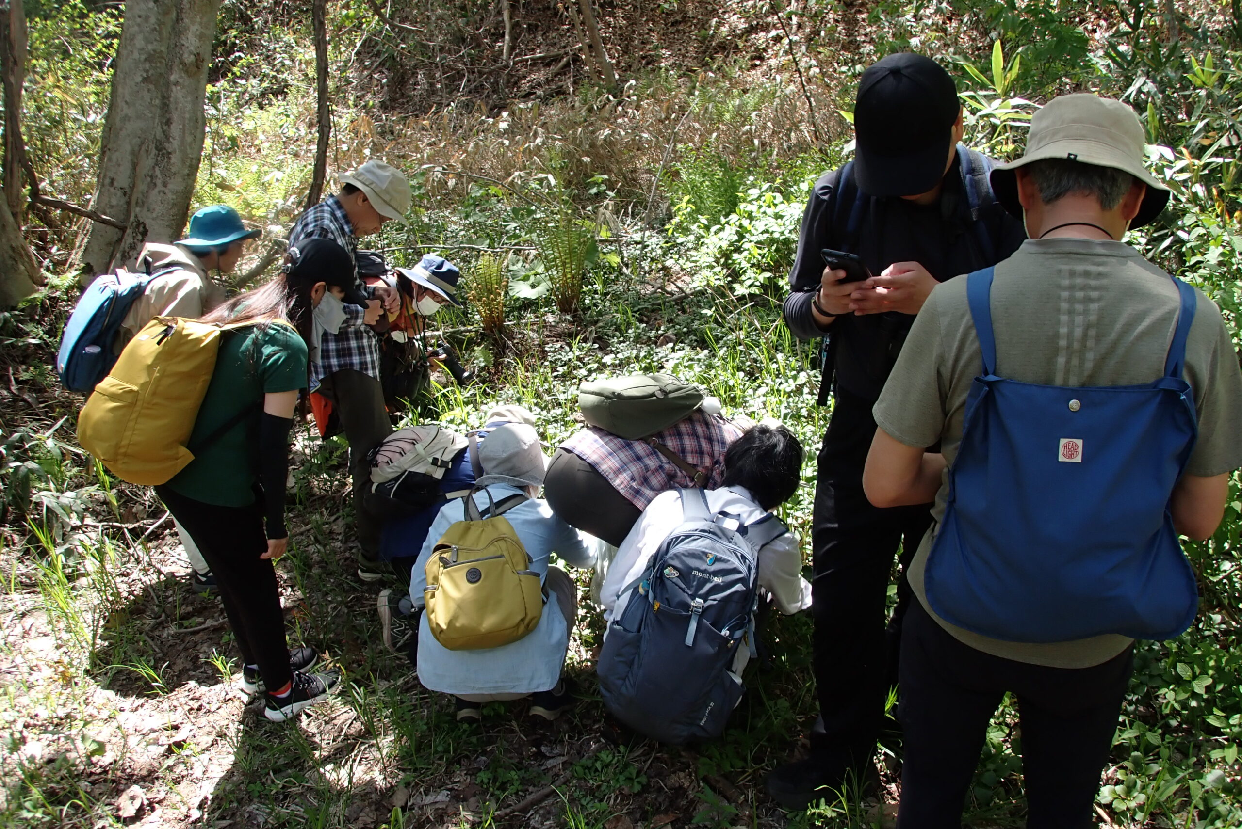 ボランティアの皆さんとの参加者の皆さんとゆっくり歩きながら花や鳥、虫、キノコなどなんでも観察していきます。
