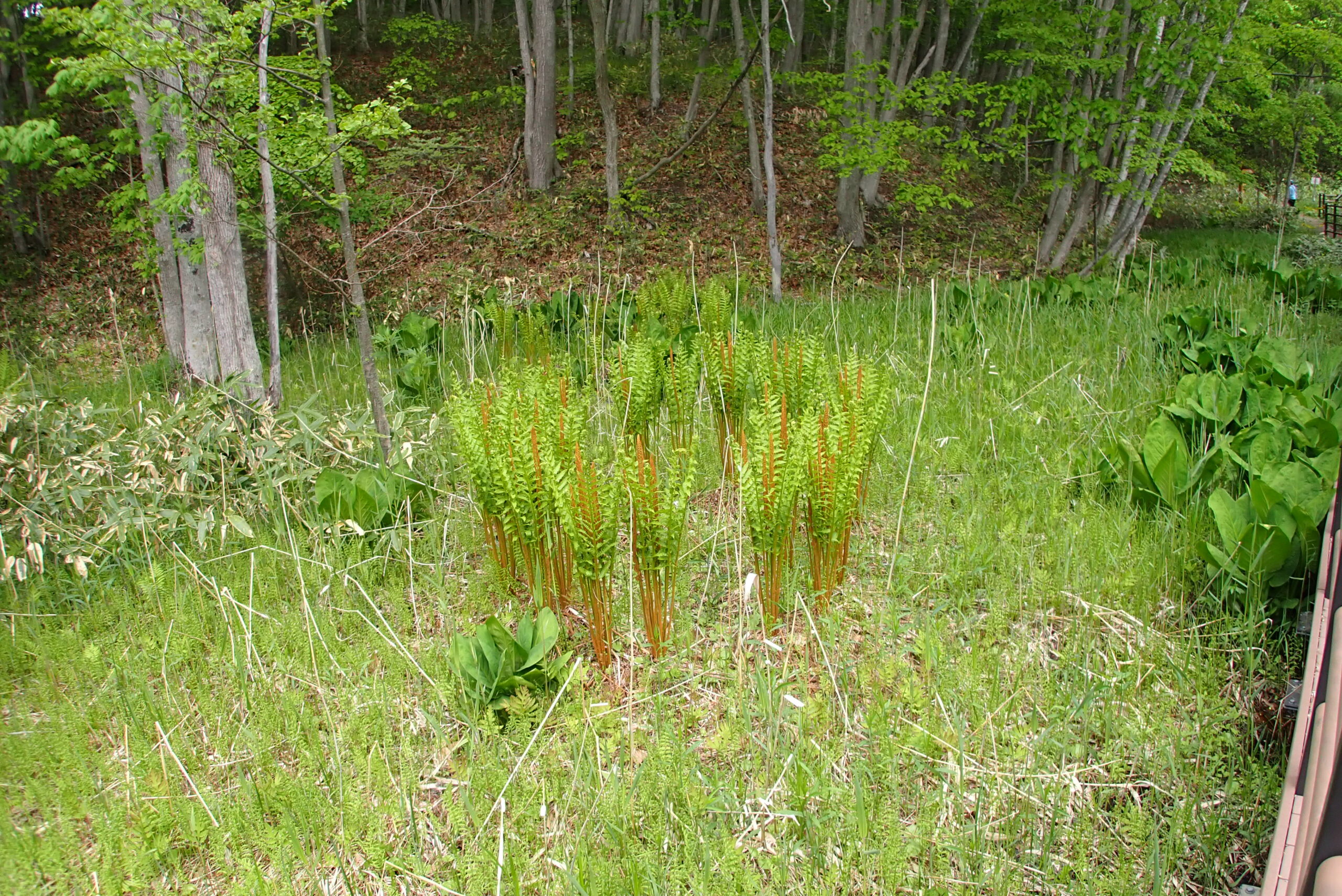 ヤマドリゼンマイの胞子葉が伸びてきています。
