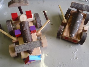 いろいろな形の木を使って、オリジナルの車を作ります。みんなどんな車を作ったでしょうか?