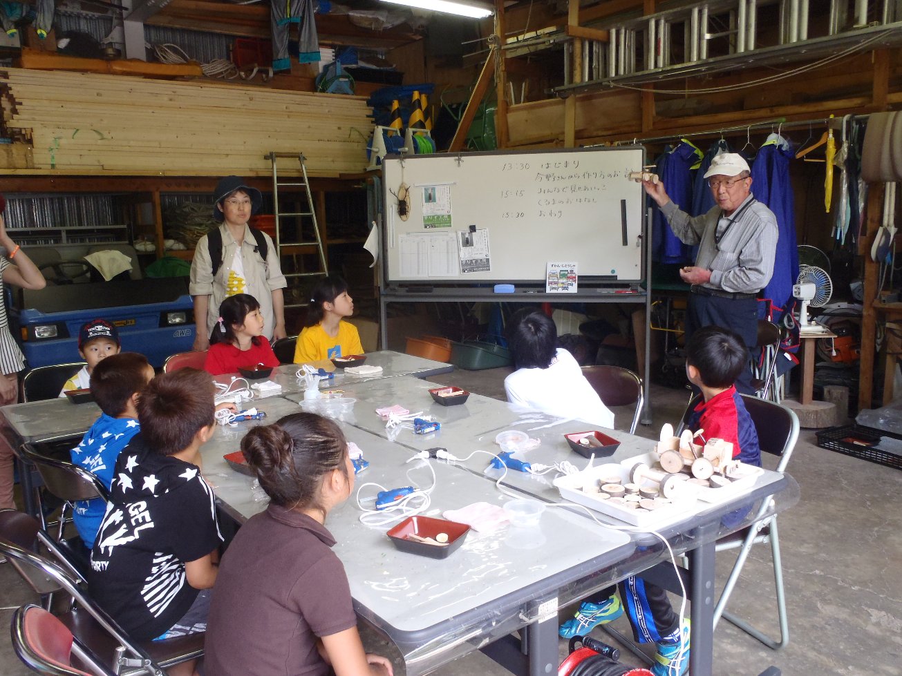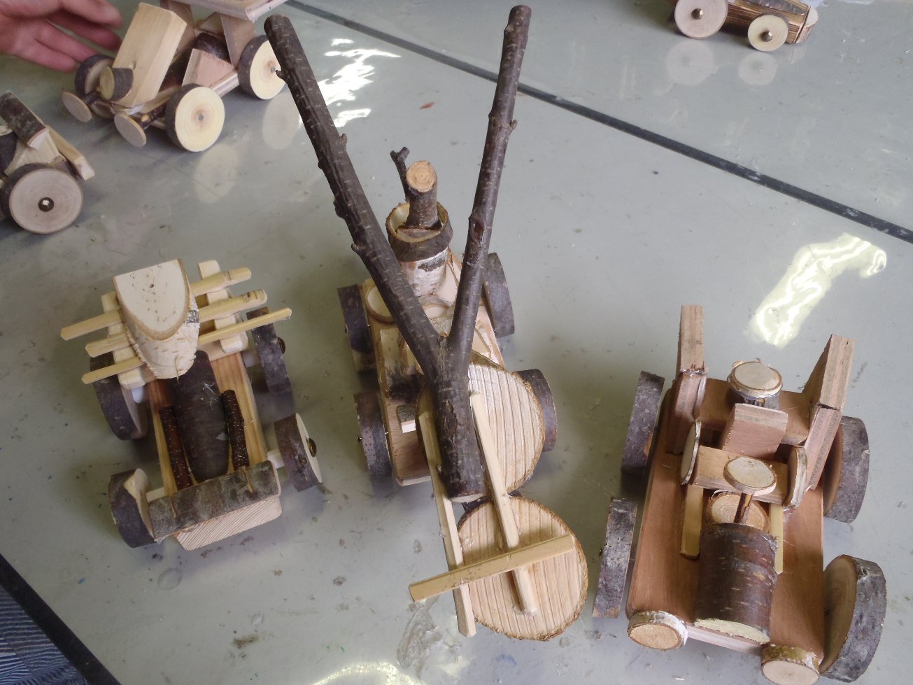 今日は子りす工房~こどもの日で、公園の木を使って車を作りました。