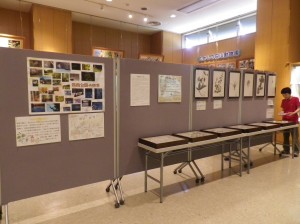 お話の後ろには、植物の標本やトンボの標本を展示しました。