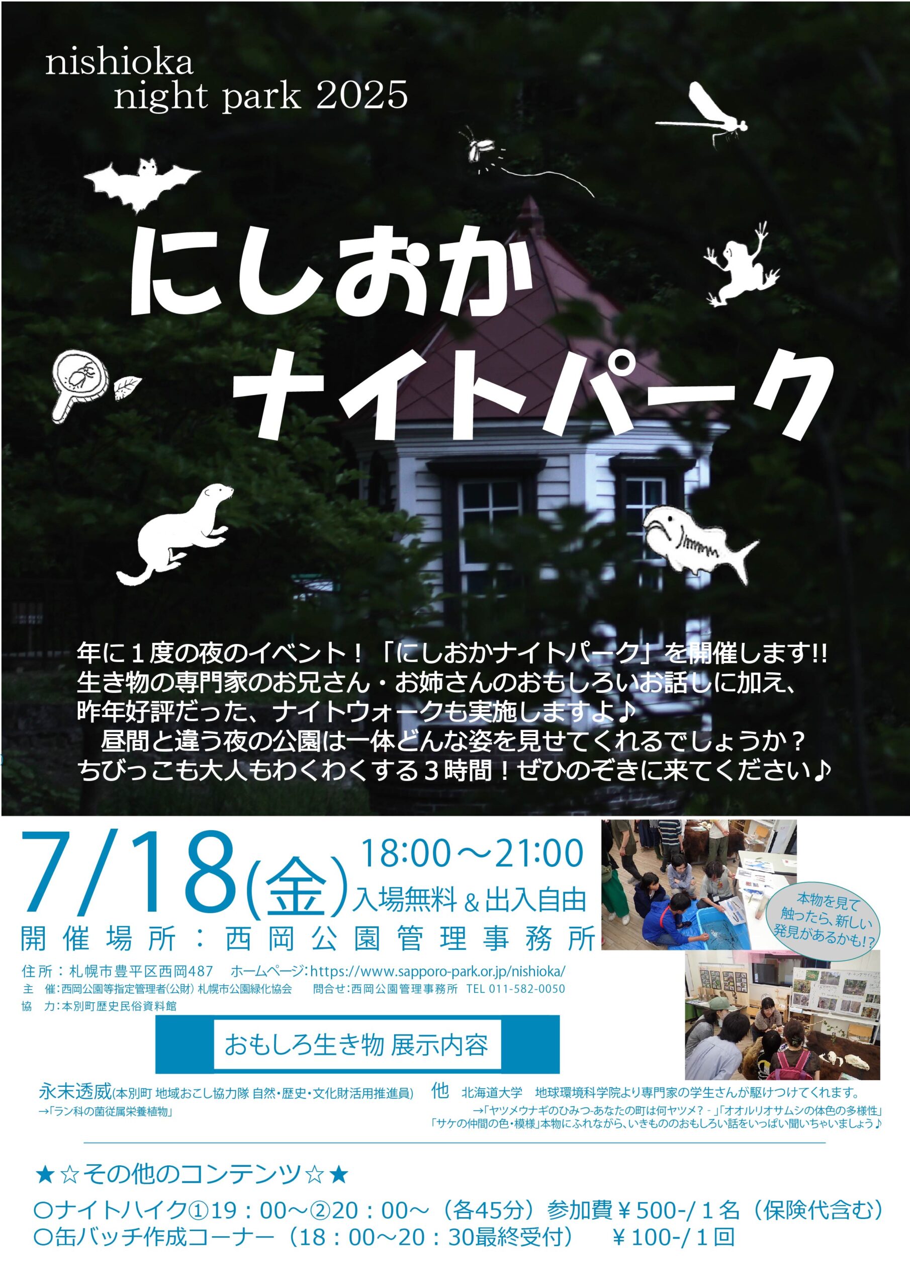 西岡公園の生きものの缶バッチ作りや、ナイトハイクもありますよ!!