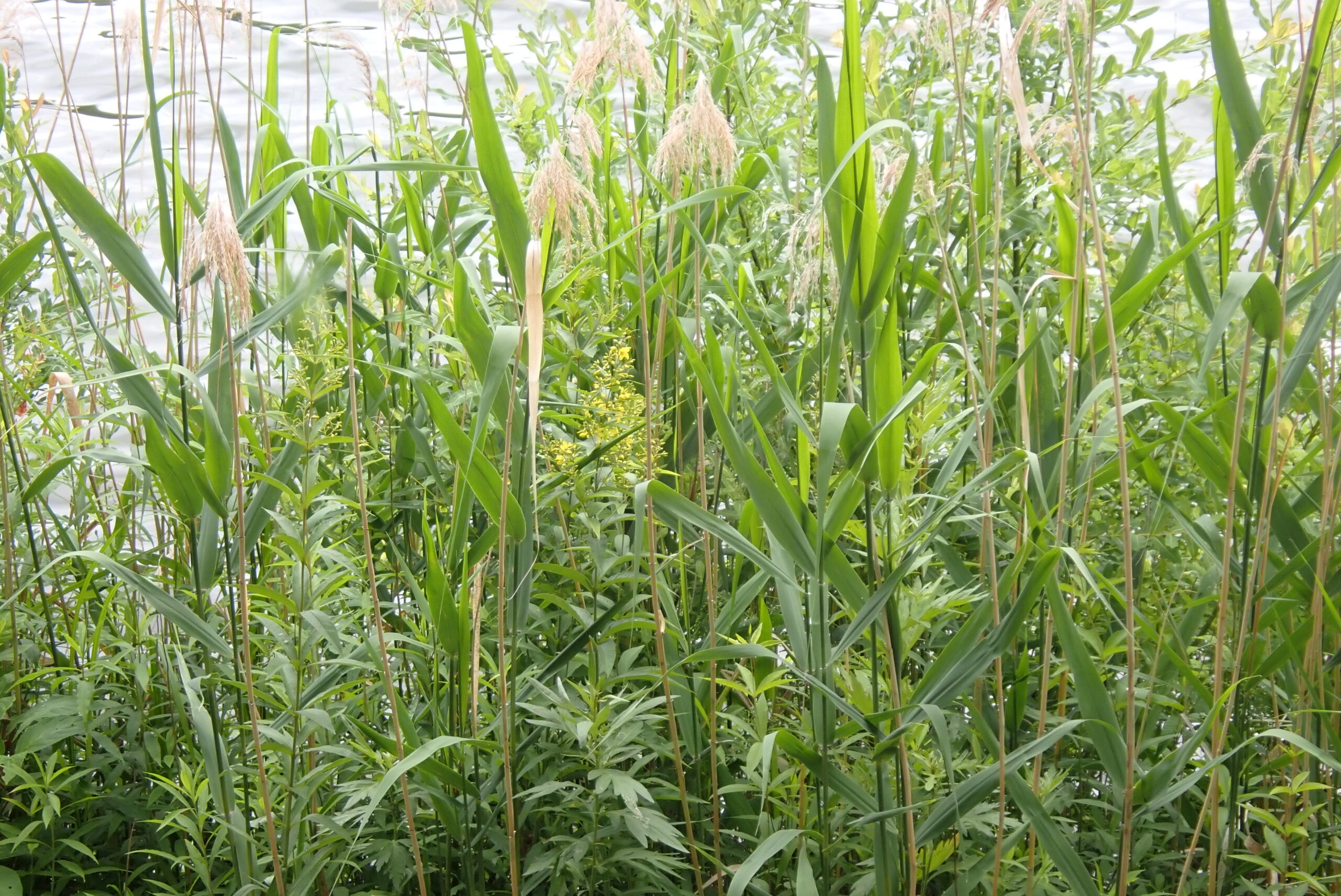 湿原の中の木道の両脇ではアシがどんどん高くなってきています。