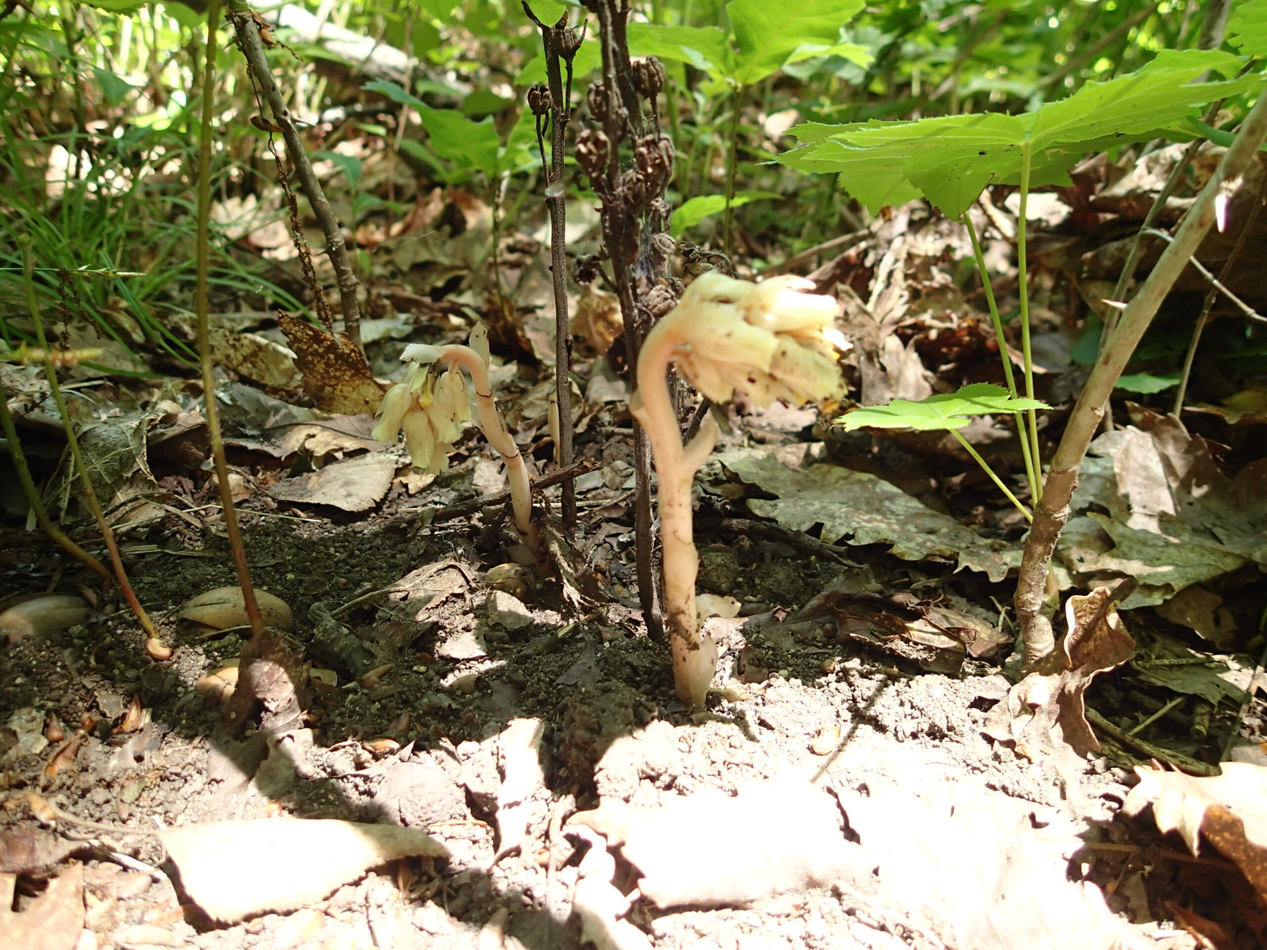 土から顔を出しているのはシャクジョウソウのつぼみです。