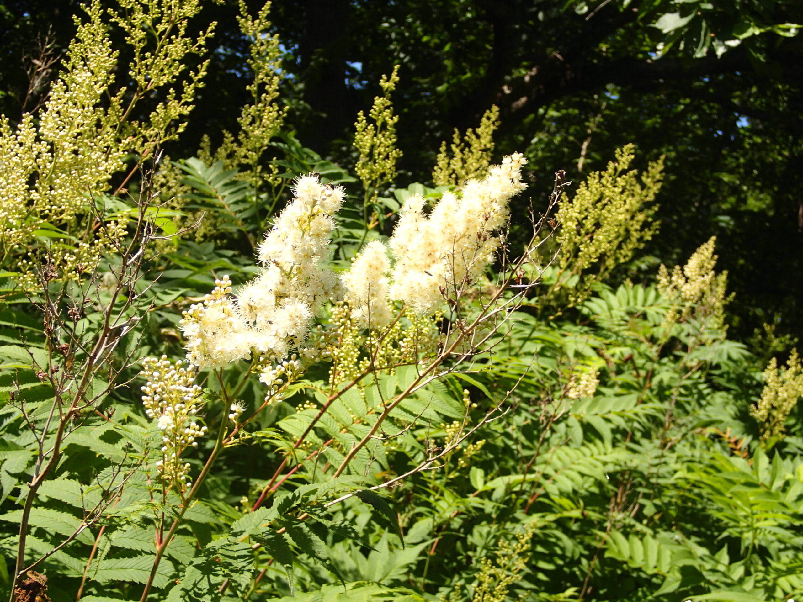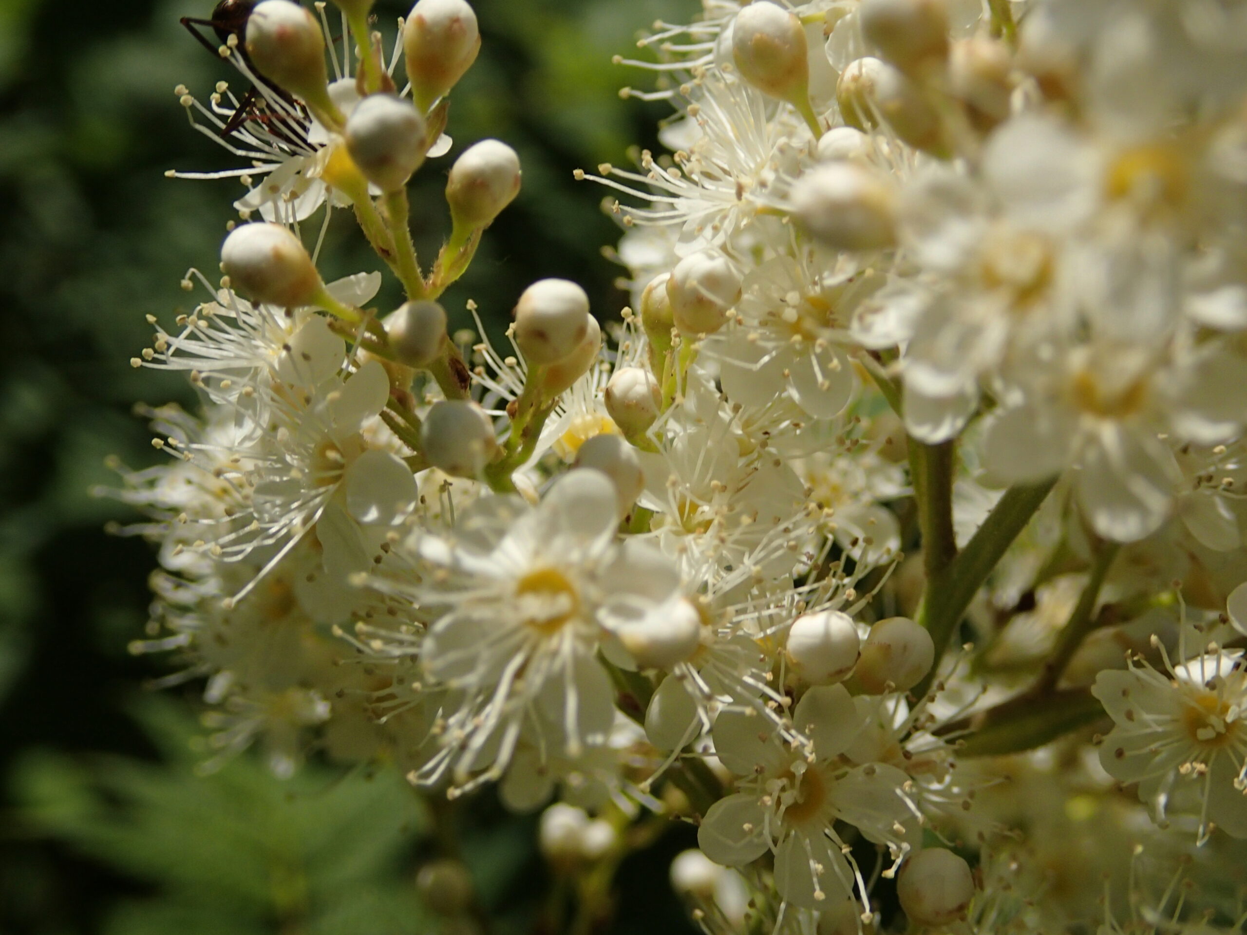 ホザキナナカマドは小さな白い花集まりになって咲いています。