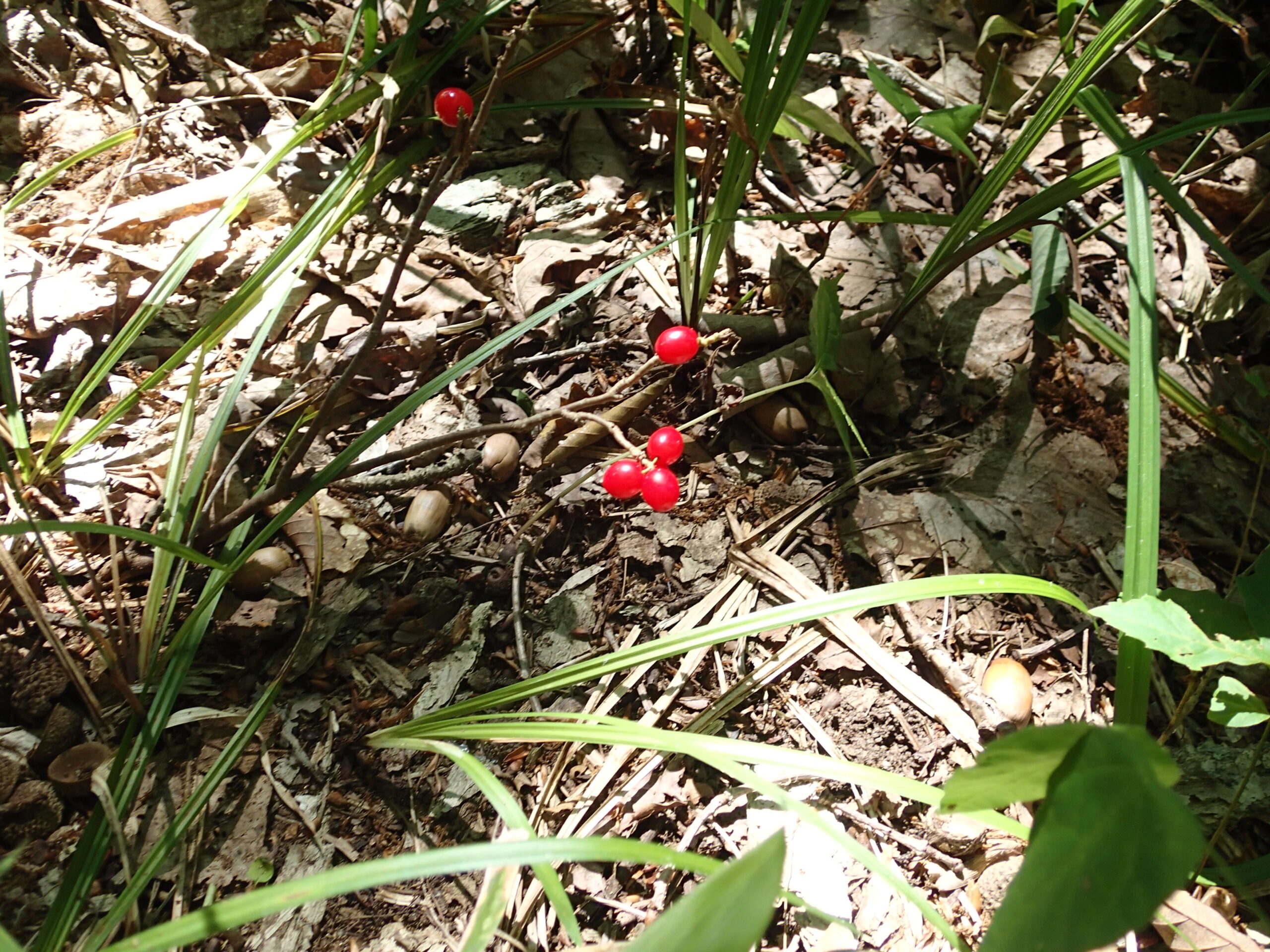 ルイヨウボタンの緑色と少し熟して青みがかった果実もありました。