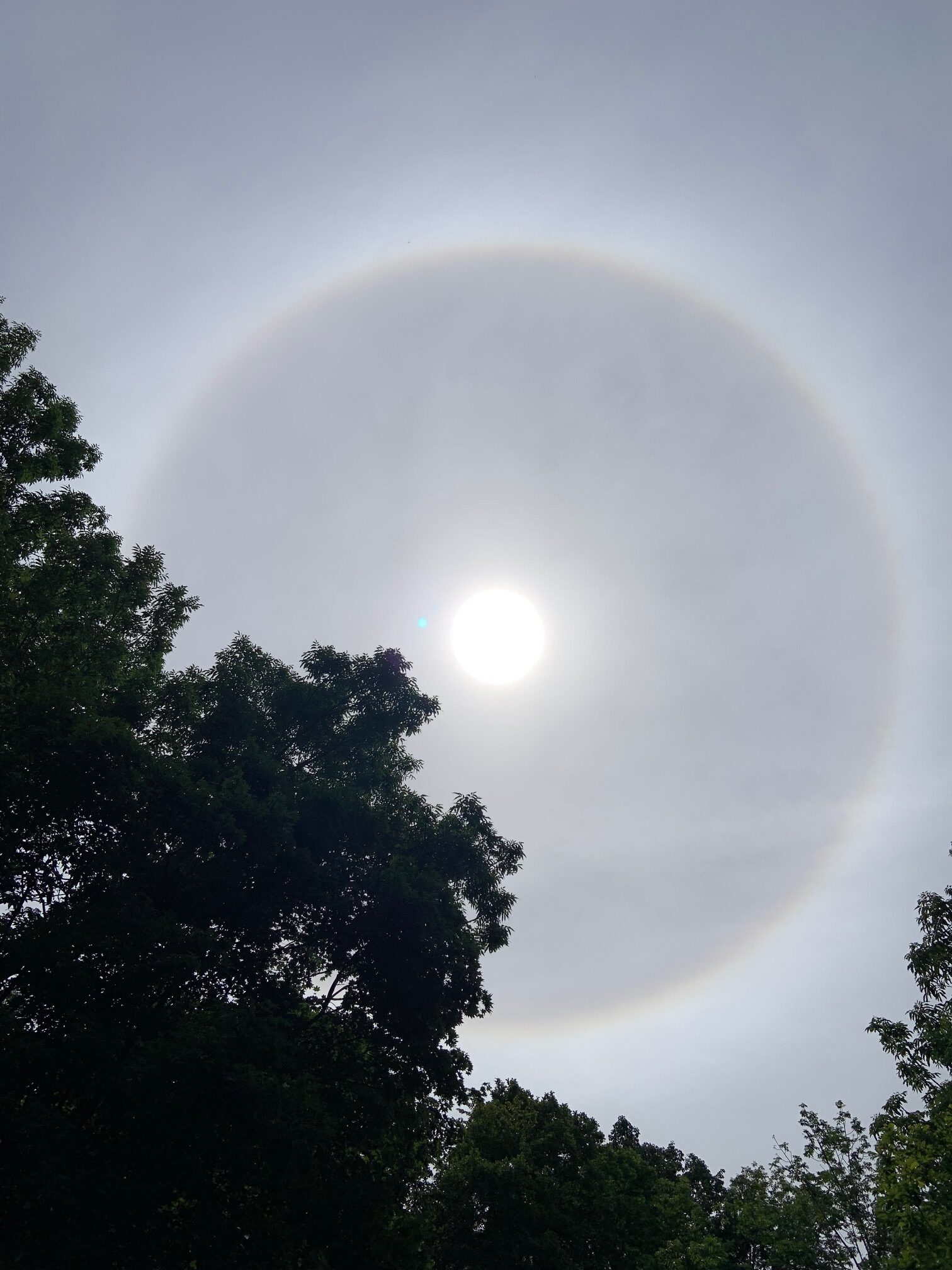 日暈・ハロ(太陽の周りに光の輪が発生する現象)が見られましたよ。