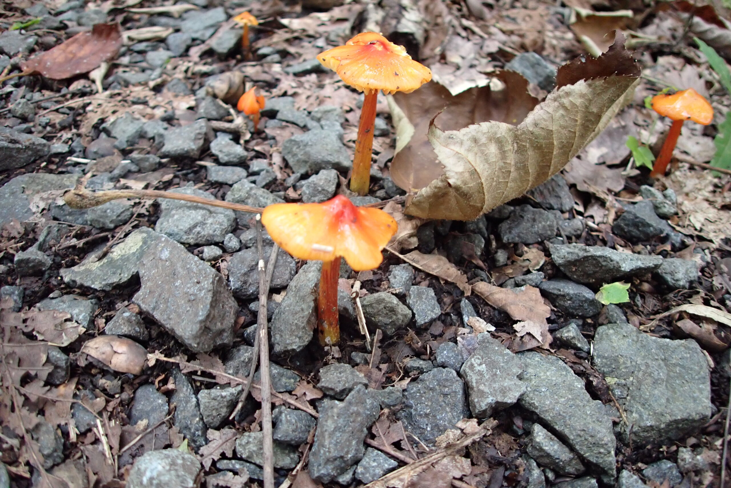 雨が降って気温も少し下がったので、色も形も様々なキノコが出てきましたよ。