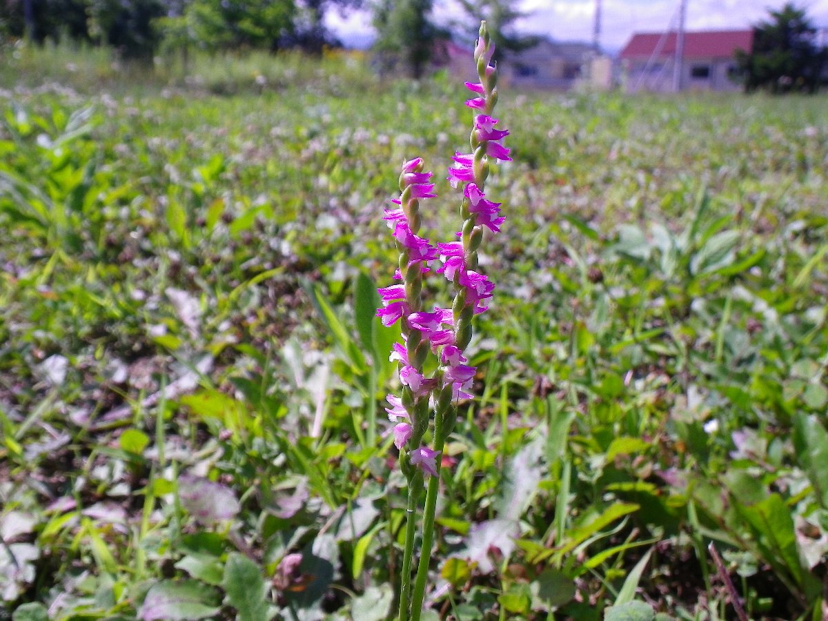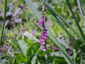 事務所の横でネジバナを発見しました。クルクルと茎の周りに花が付いています。