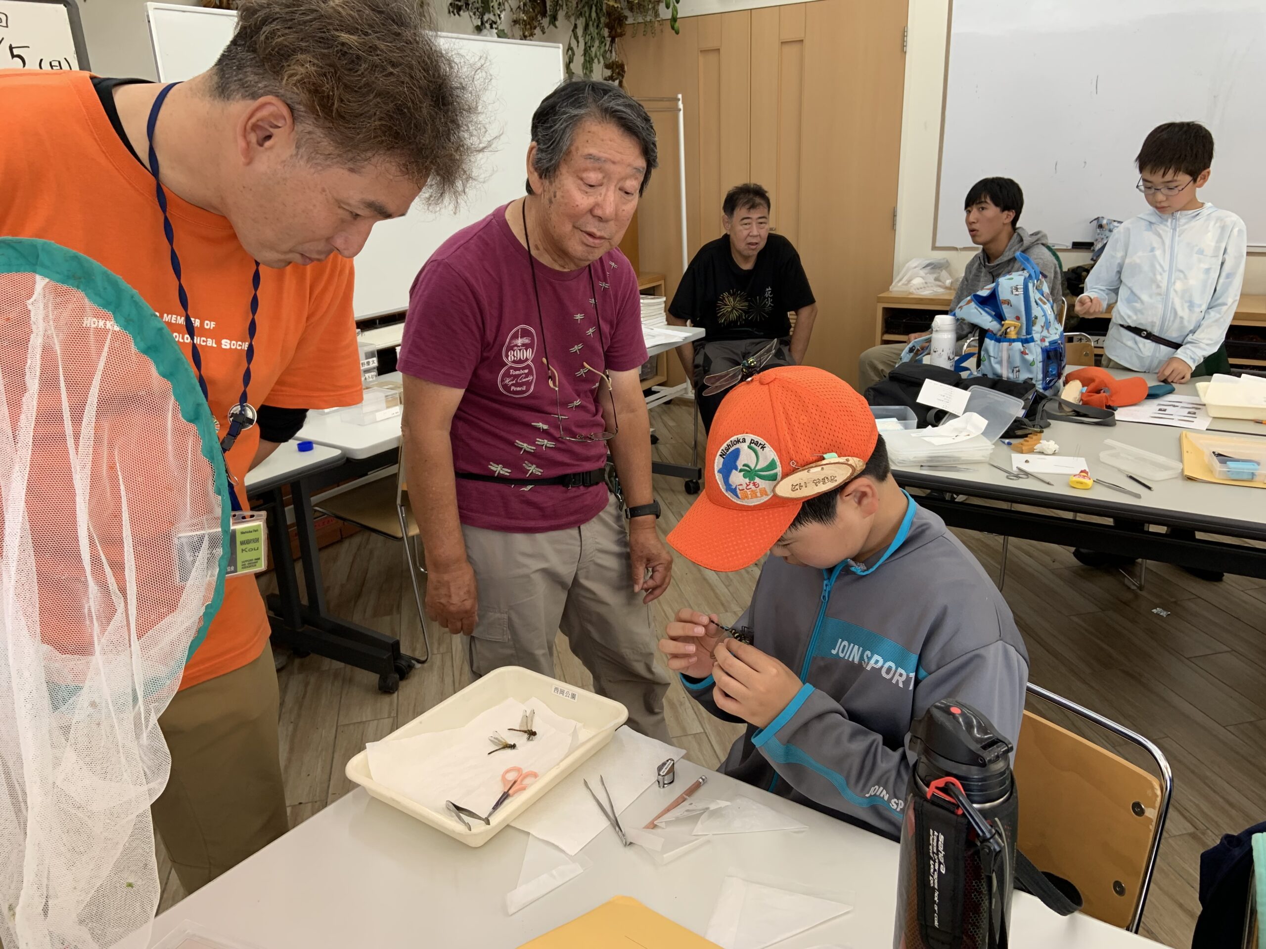 最後に、今日採集したトンボをみんなから聞いて、トンボ合わせをしますよ。