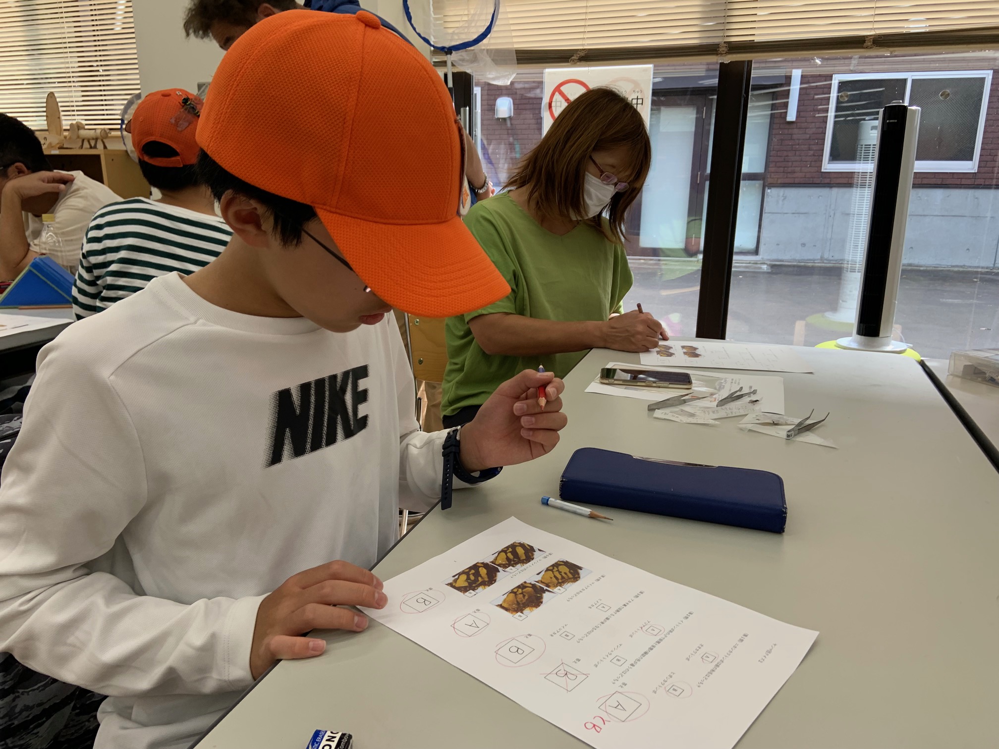 講師の先生が子どもたちに展翅標本の作り方を教えてくれました。