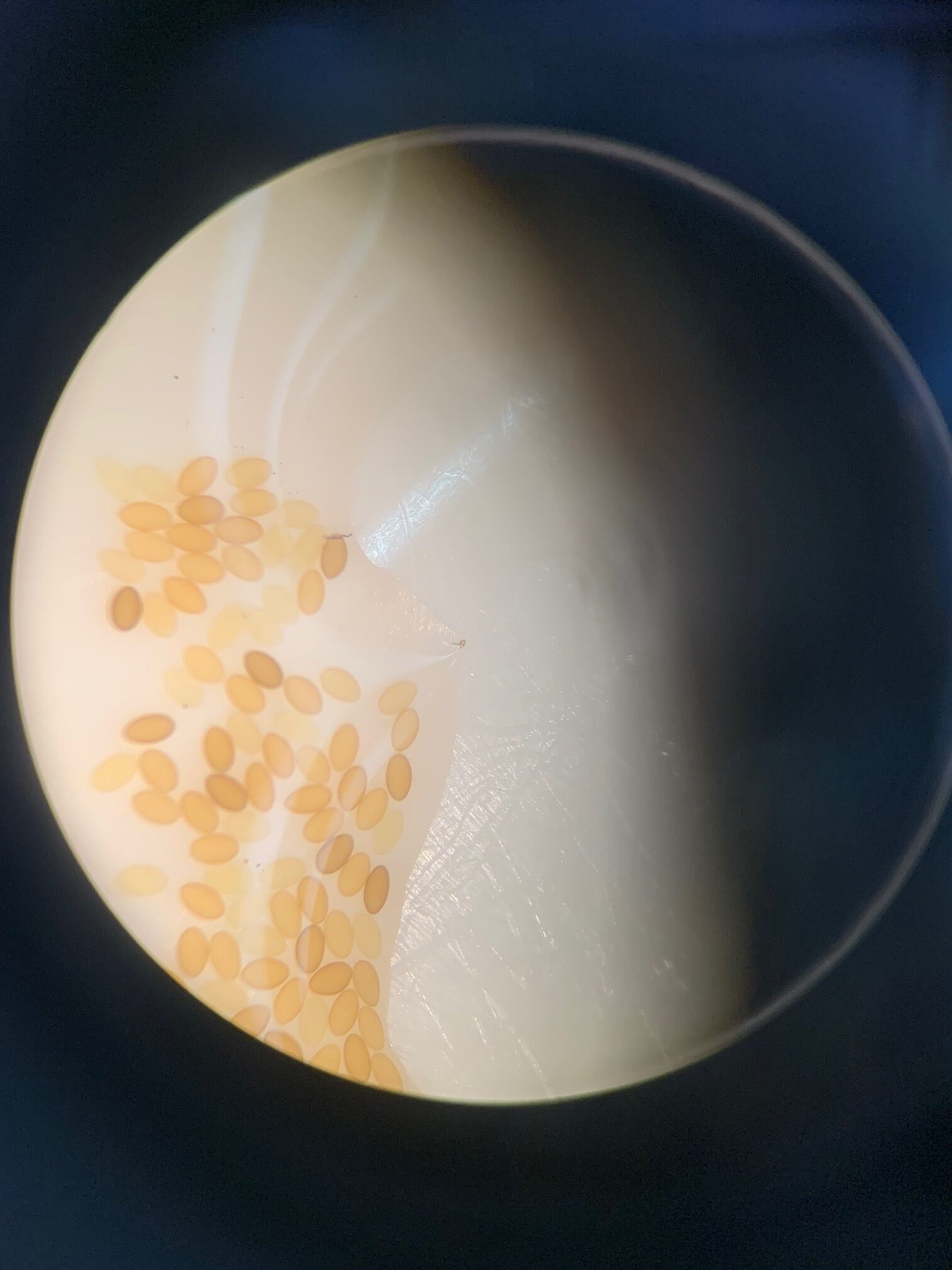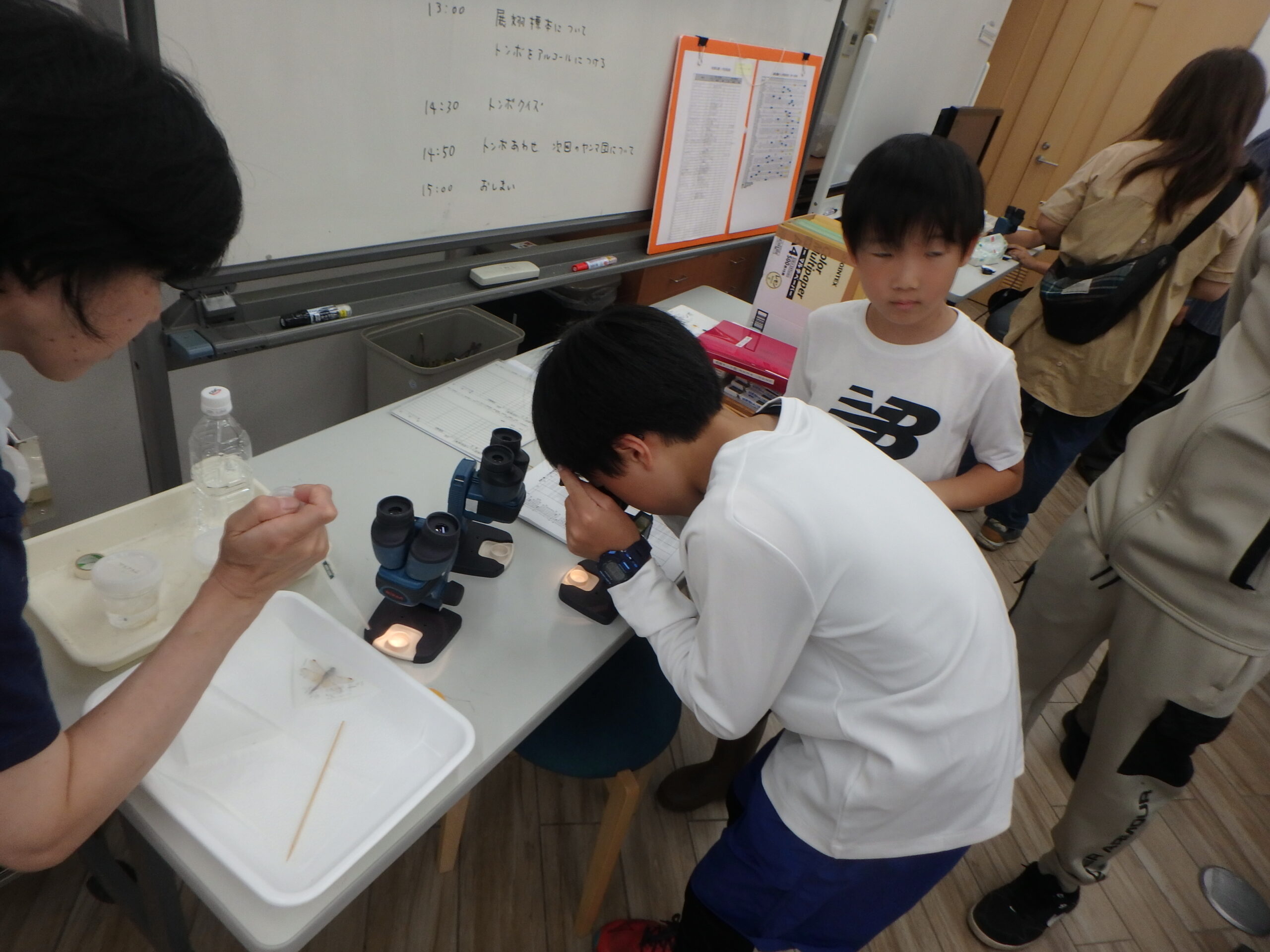 管理事務所に戻って、カップに取った卵を顕微鏡で覗いてみました。