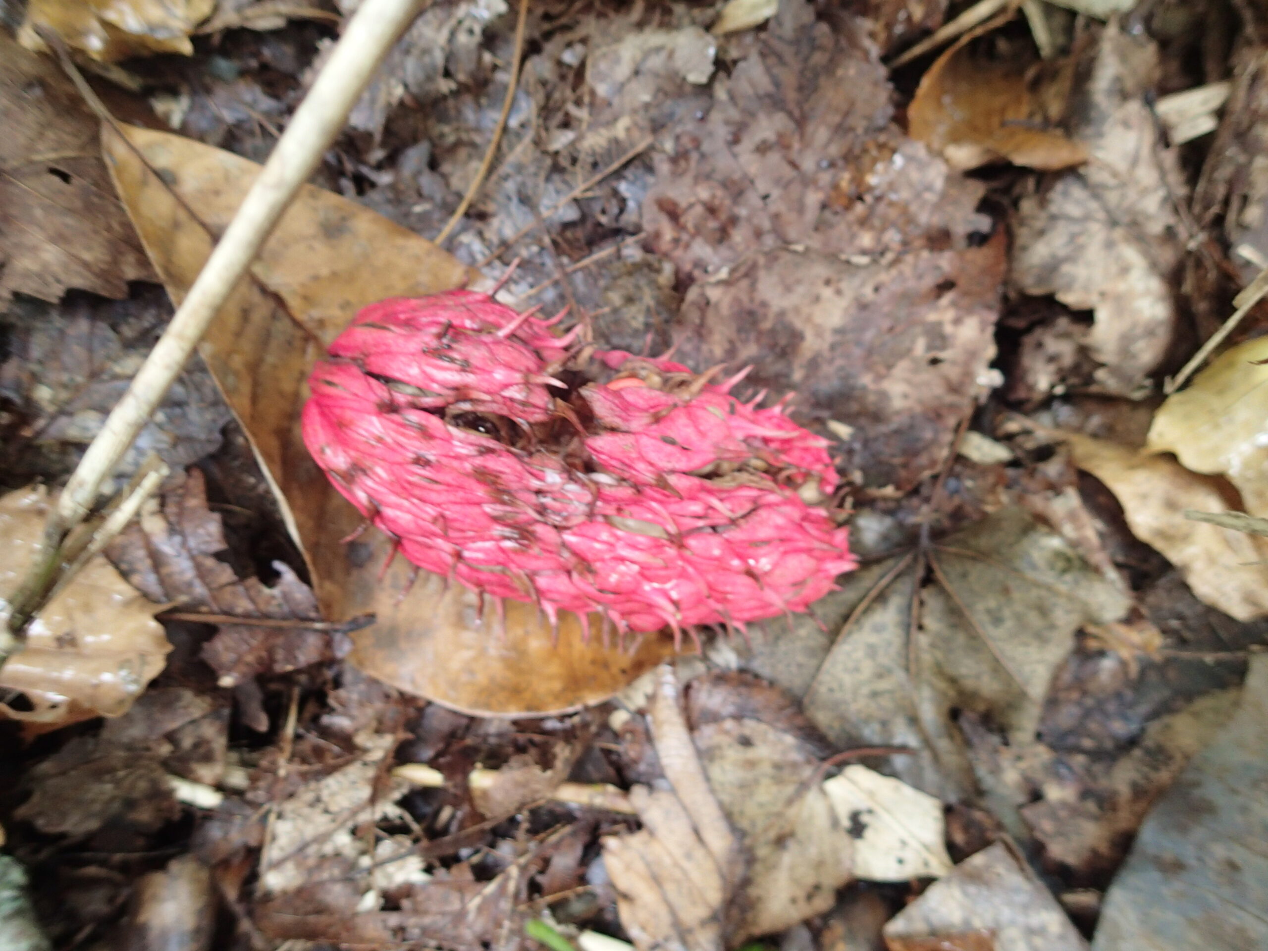 桃色の果実もしばらくすると乾燥して茶褐色に変わっていきます。