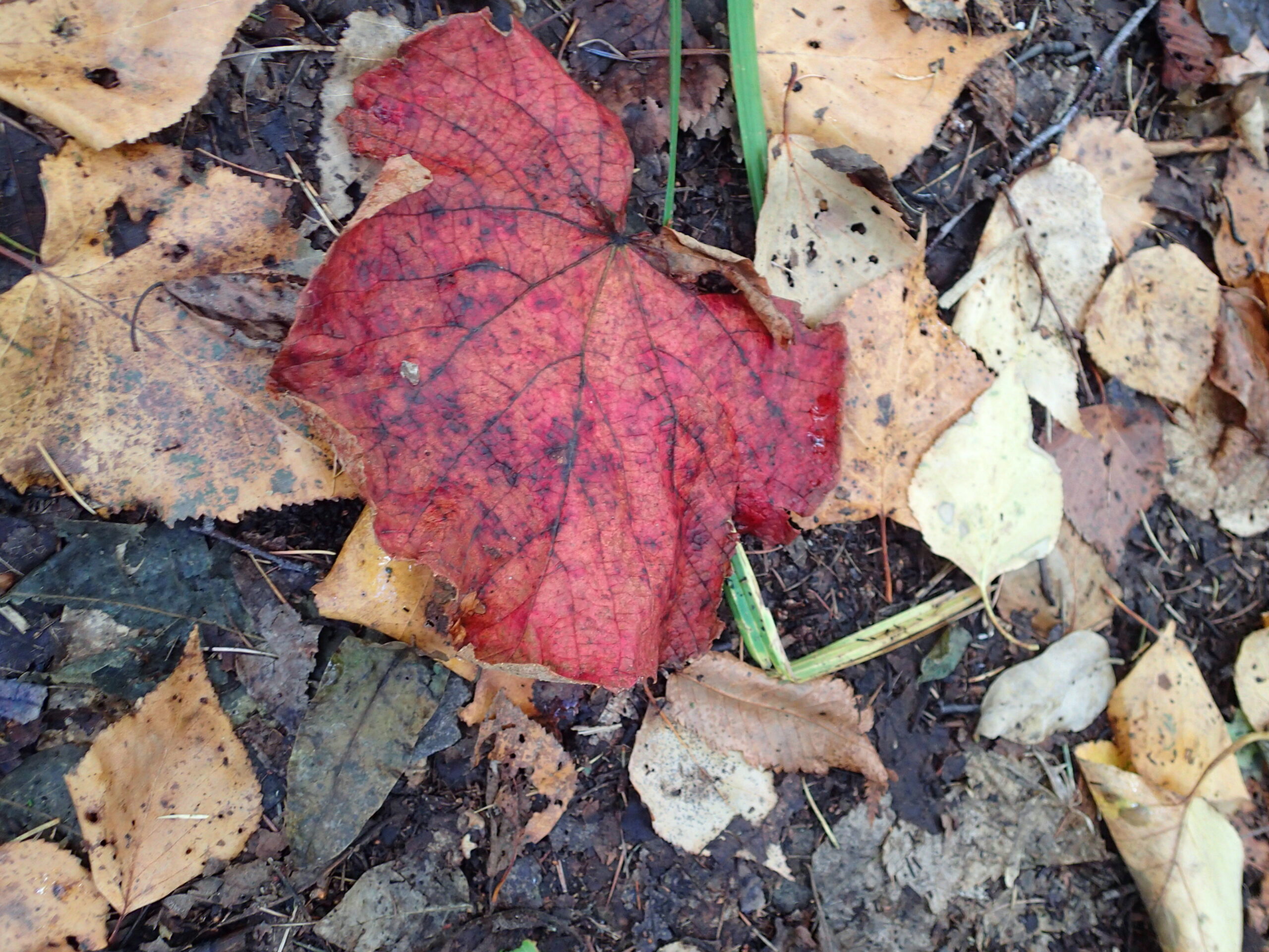 エゾヤマザクラの赤い葉がほとんど落葉しています。