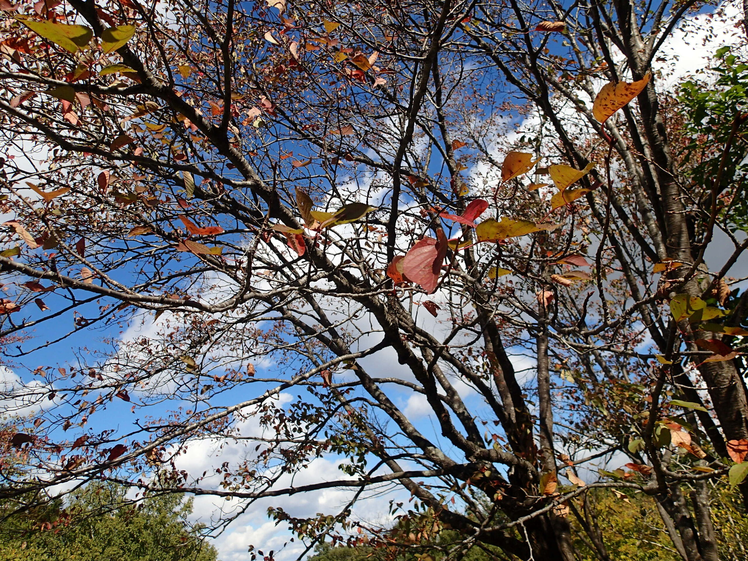 風が冷たくなってきました。園内の樹々が少しずつ落葉を始めています。