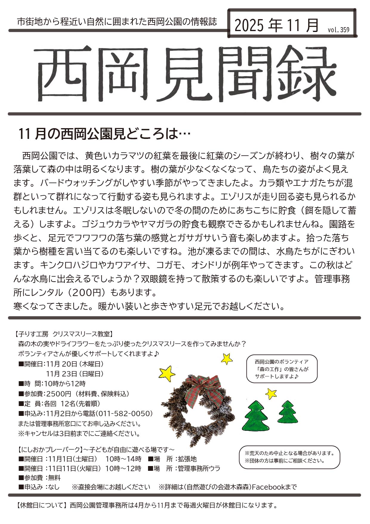 そんな西岡公園では西岡見聞録11月号を発行しました。