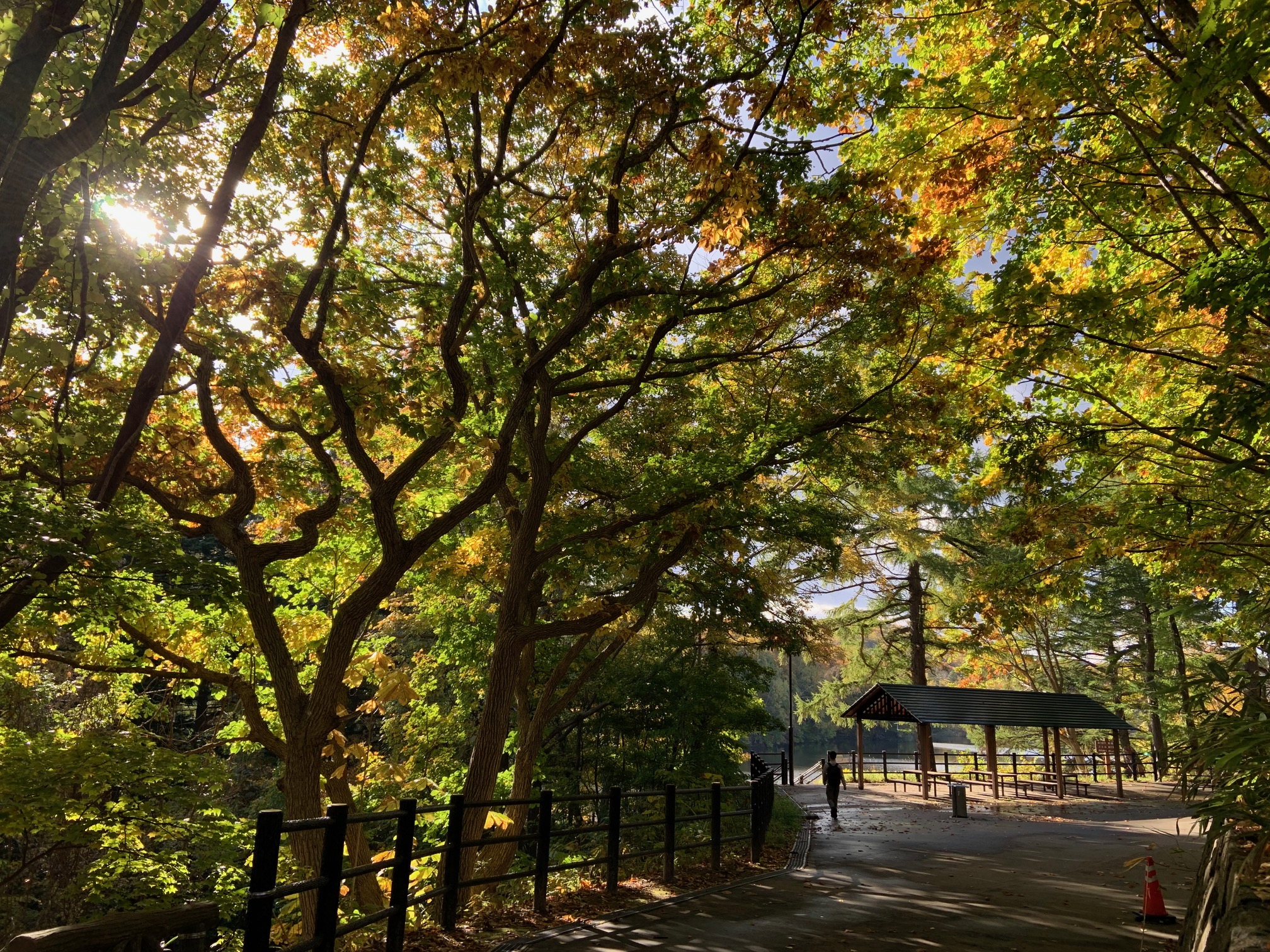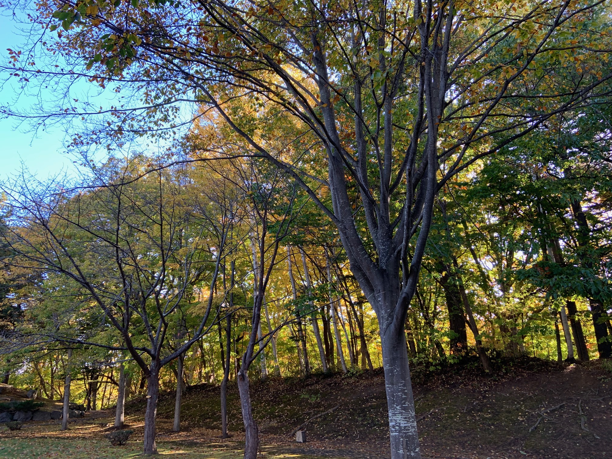 西岡公園はシラカンバなど秋に葉が黄色くなる樹木が多いのが特徴です。