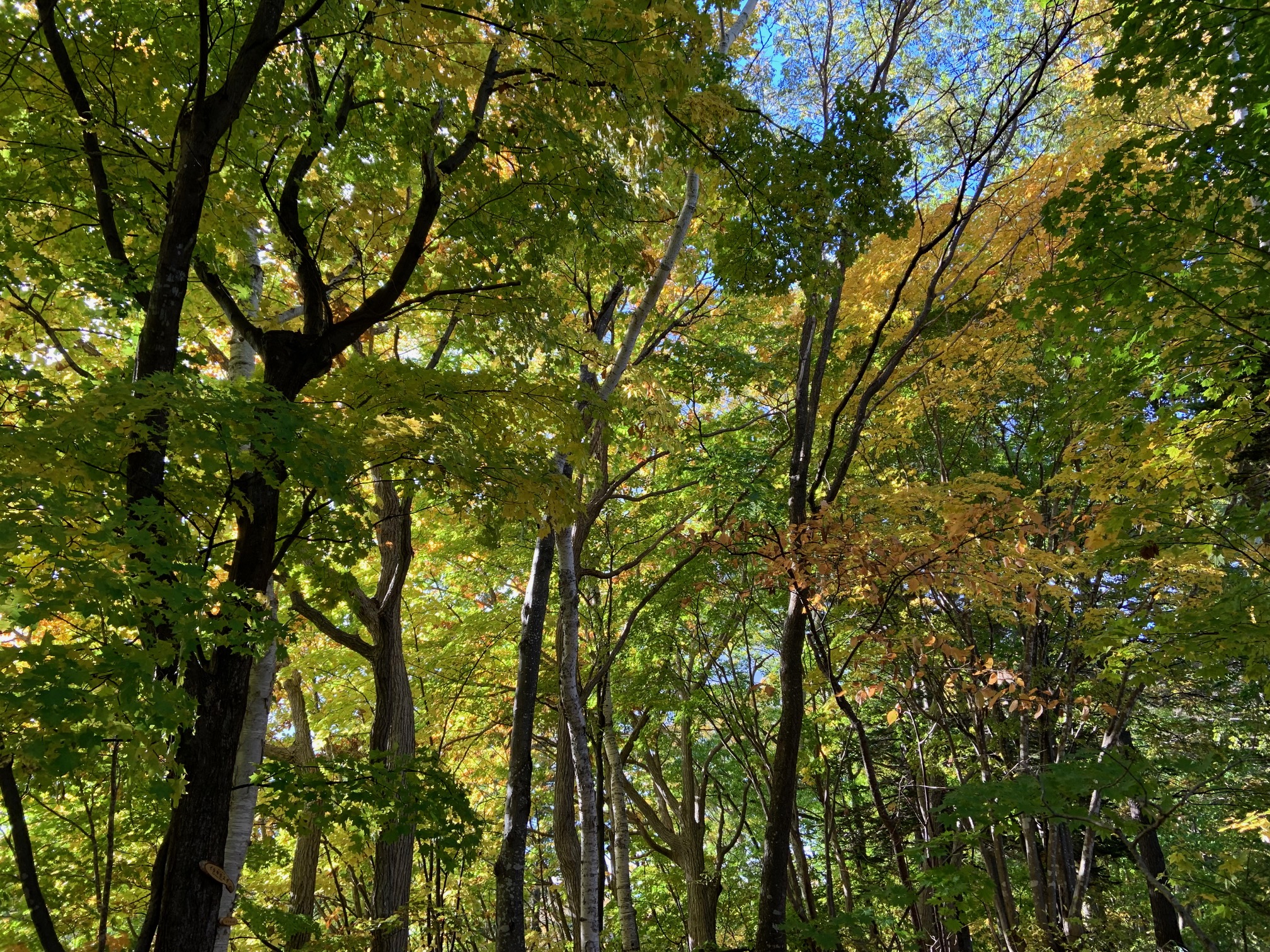 紅葉しない針葉樹と紅葉する広葉樹のコントラストがはっきりしてきました。