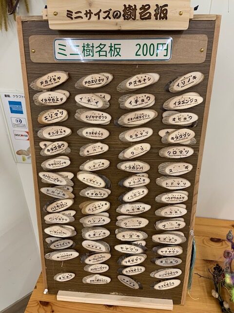 西岡公園にある樹木たちの名前が入ったプレートが天然木で作られています。