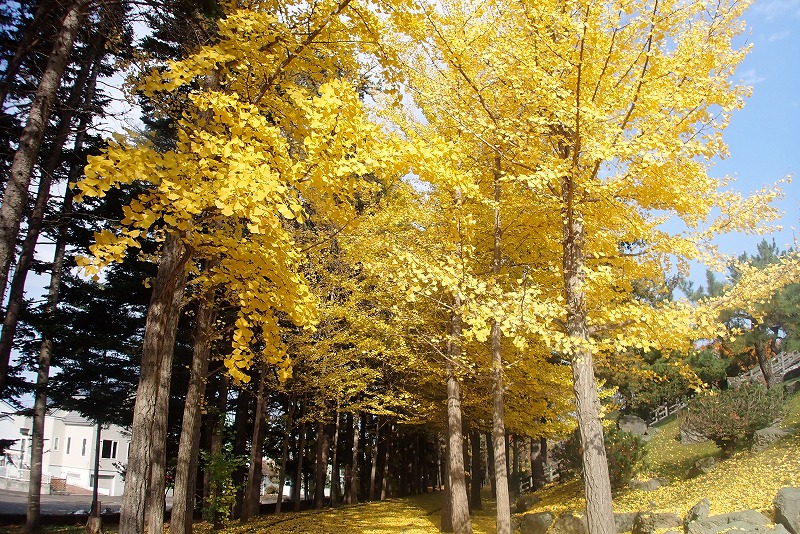 管理事務所の裏のイチョウ並木もとても綺麗です。