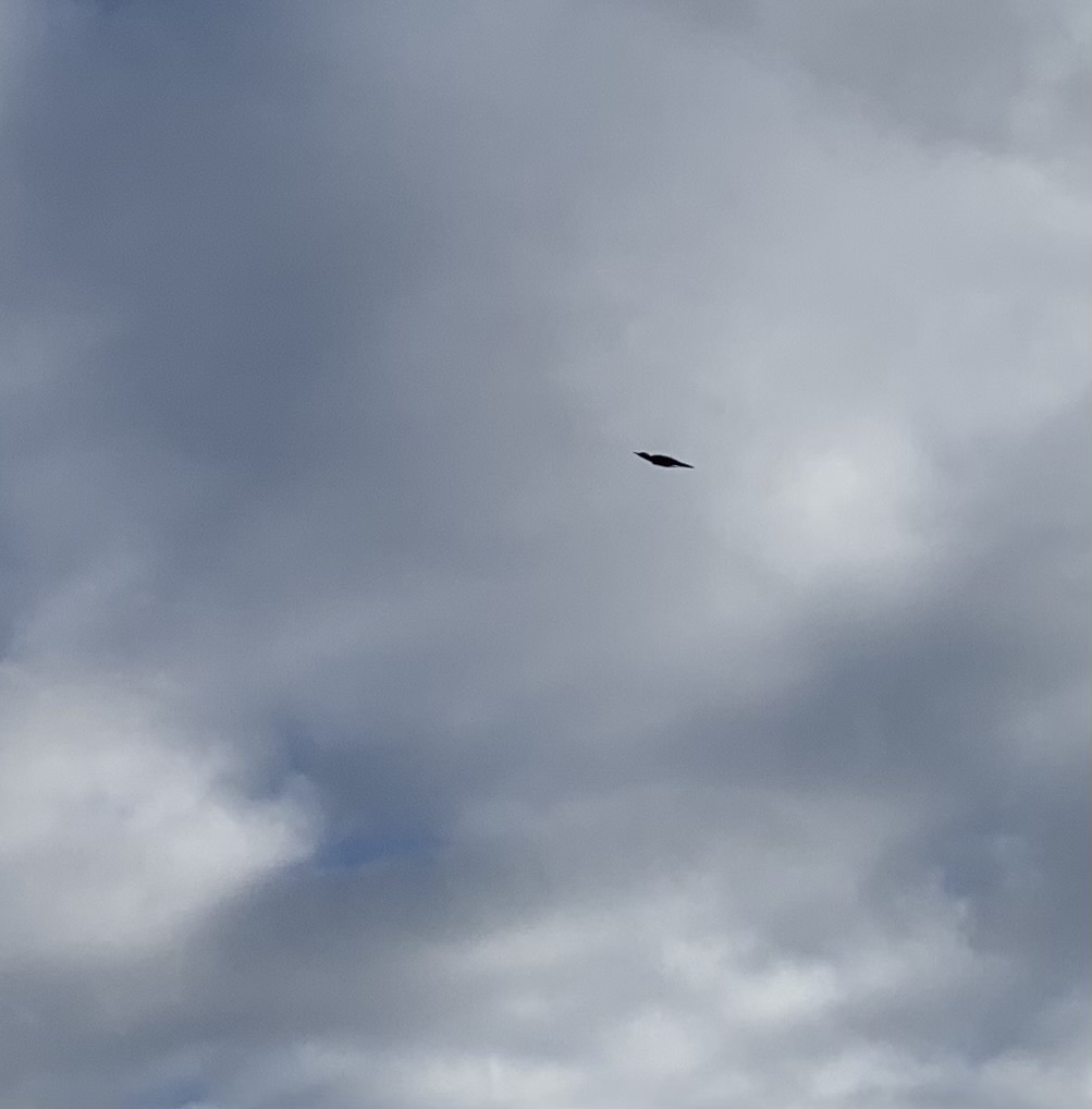 池の上空をクマゲラが飛んでいきます。
