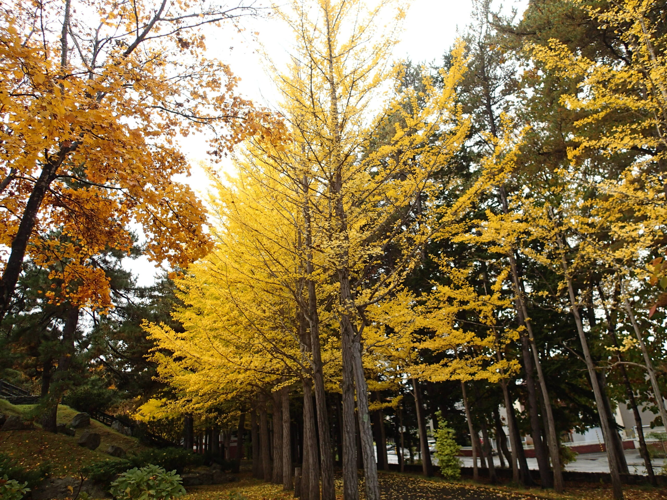 西岡公園は黄色い紅葉が多いです。