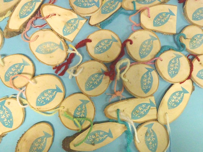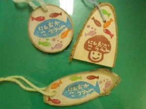 たくさんの魚たち・・・・・ 明日、川の水族館でやるスタンプラリーの参加券です。 クイズに正解すると、この木っ端に魚のスタンプが押してもらえます!