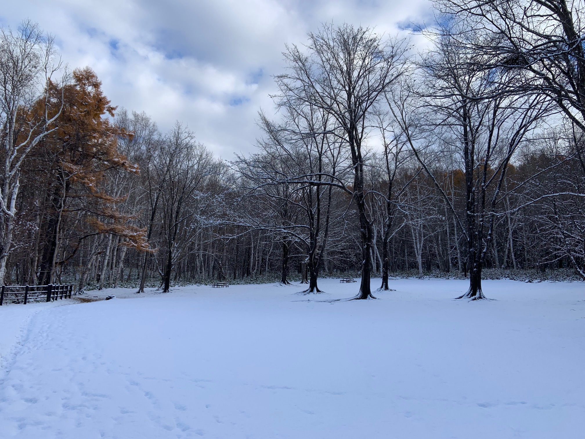 最後に黄色い葉が残っているカラマツがきれいです。
