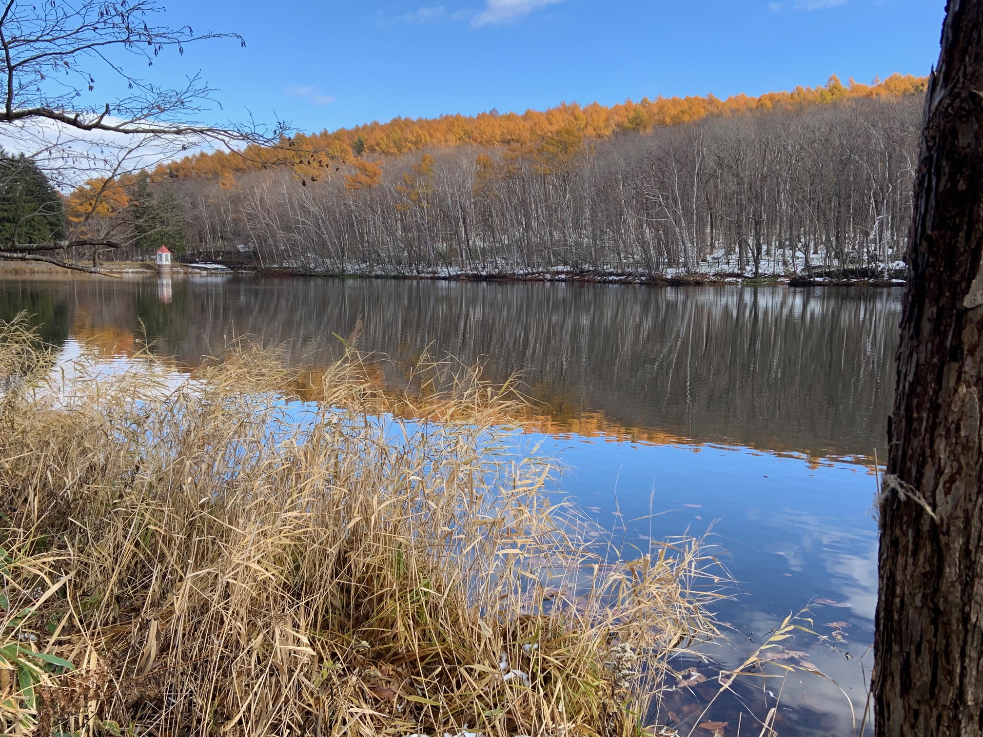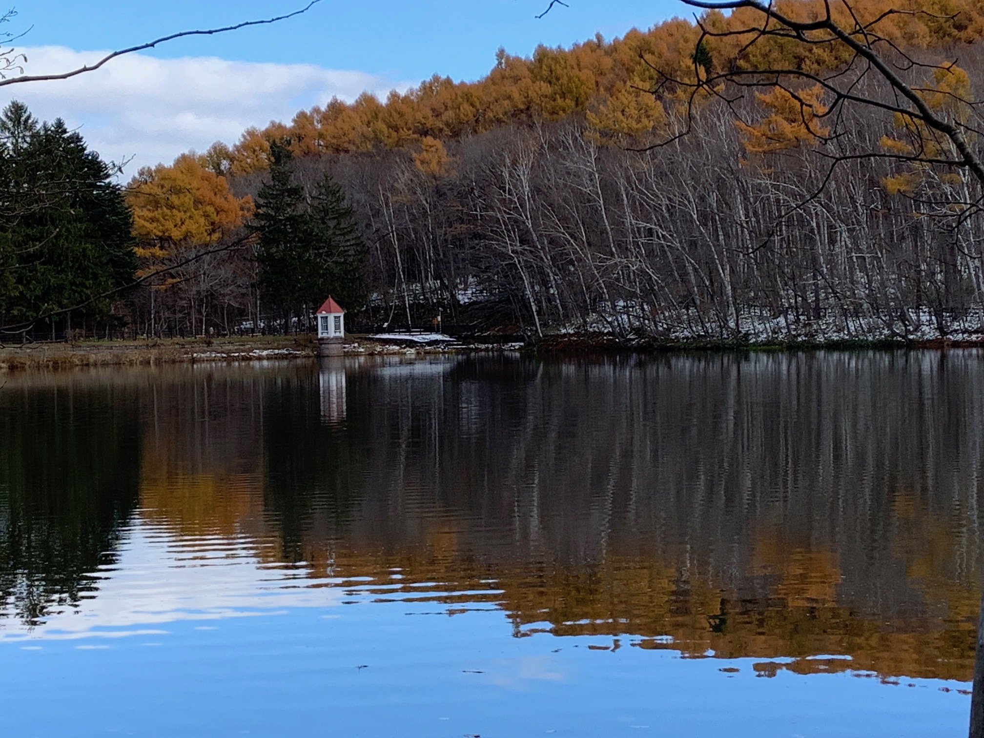ほかの樹木が落葉して、黄色のカラマツがひときわ目をひきます。