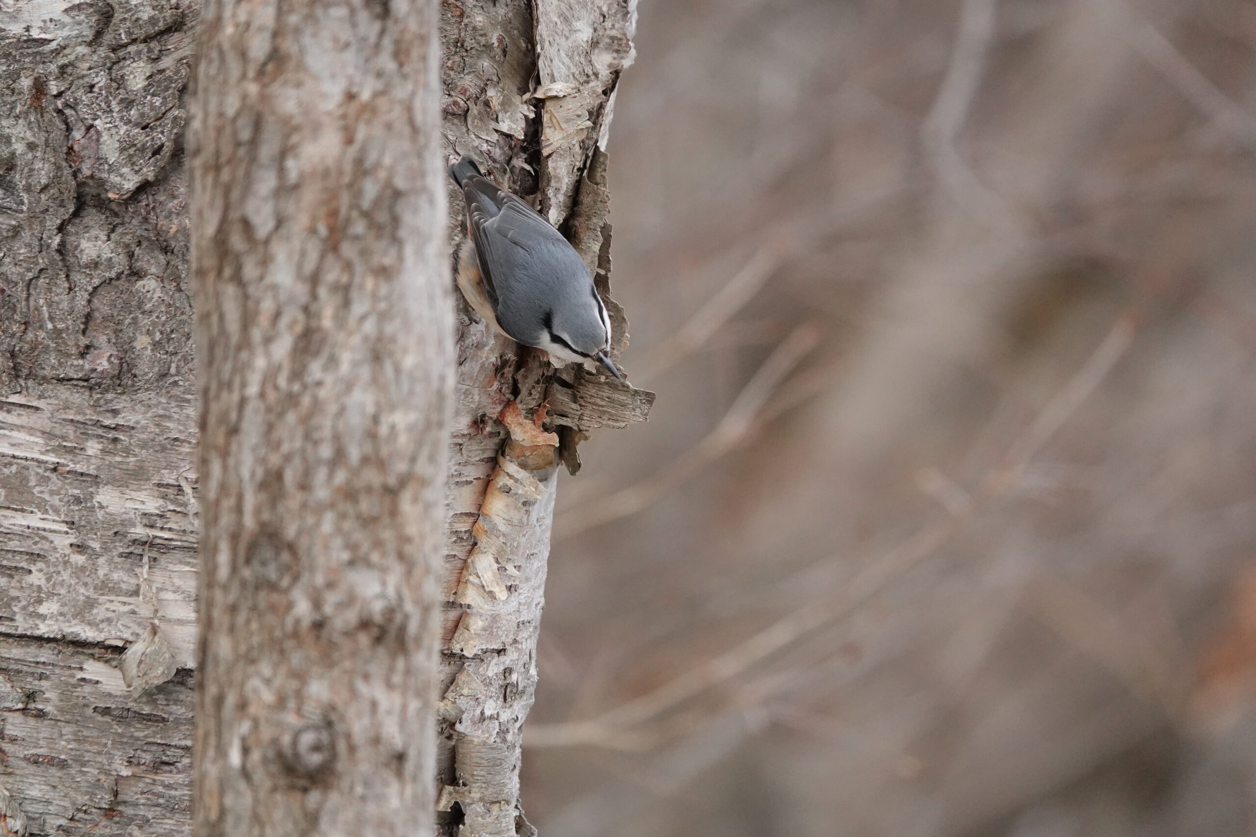 キツツキや、キバシリも樹の幹を移動して、虫を探して食べる鳥なのですが、頭を下に向けて歩くところはお目にかかりません。